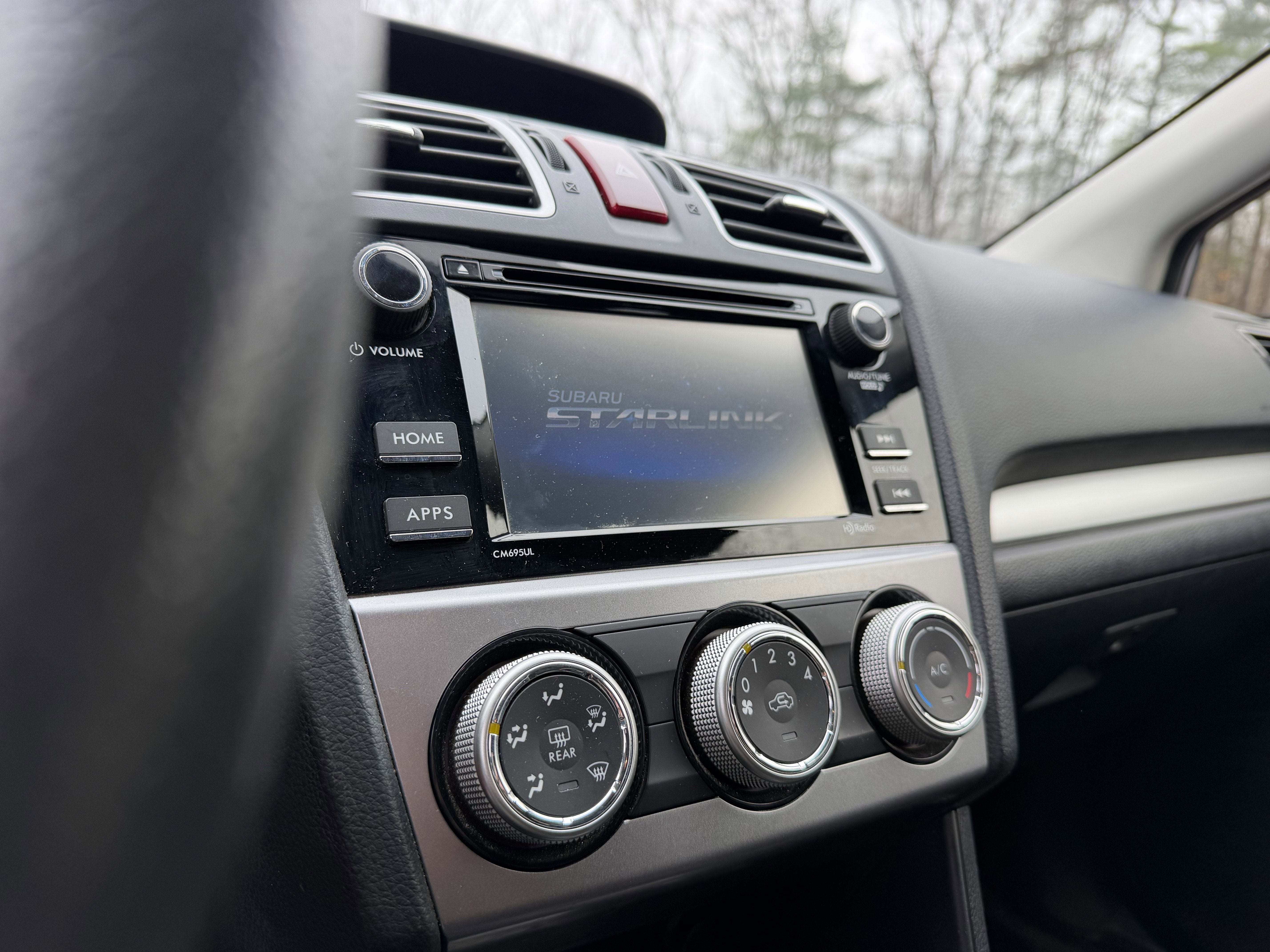 - Radio: Subaru Starlink con sistema de multimedios de 6.2 plg -incluye: radio HD AM/FM estéreo con reproductor de CD de un disco, compatibilidad con archivos MP3/WMA/CRR/RW, pantalla táctil LCD de alta resolución con gestos simples de 6.2 plg, sistema de datos de radiodifusora (RBDS), conectividad de audio por difusión Bluetooth, conectividad de teléfono a manos libres Bluetooth, compatibilidad para control del iPod, compatibilidad con función para etiquetar música iTunes, servicio All Access de SiriusXM Traffic y de viaje Travel Link (requiere suscripción), entrada USB, enchufe de entrada auxiliar de 3.5 mm, 6 altavoces, y antena montada en el techo La inscripción a StarLink no puede ser aplicable a las compañías de manejo de flotas (FMCs) o a clientes de flotas comerciales en estos momentos.