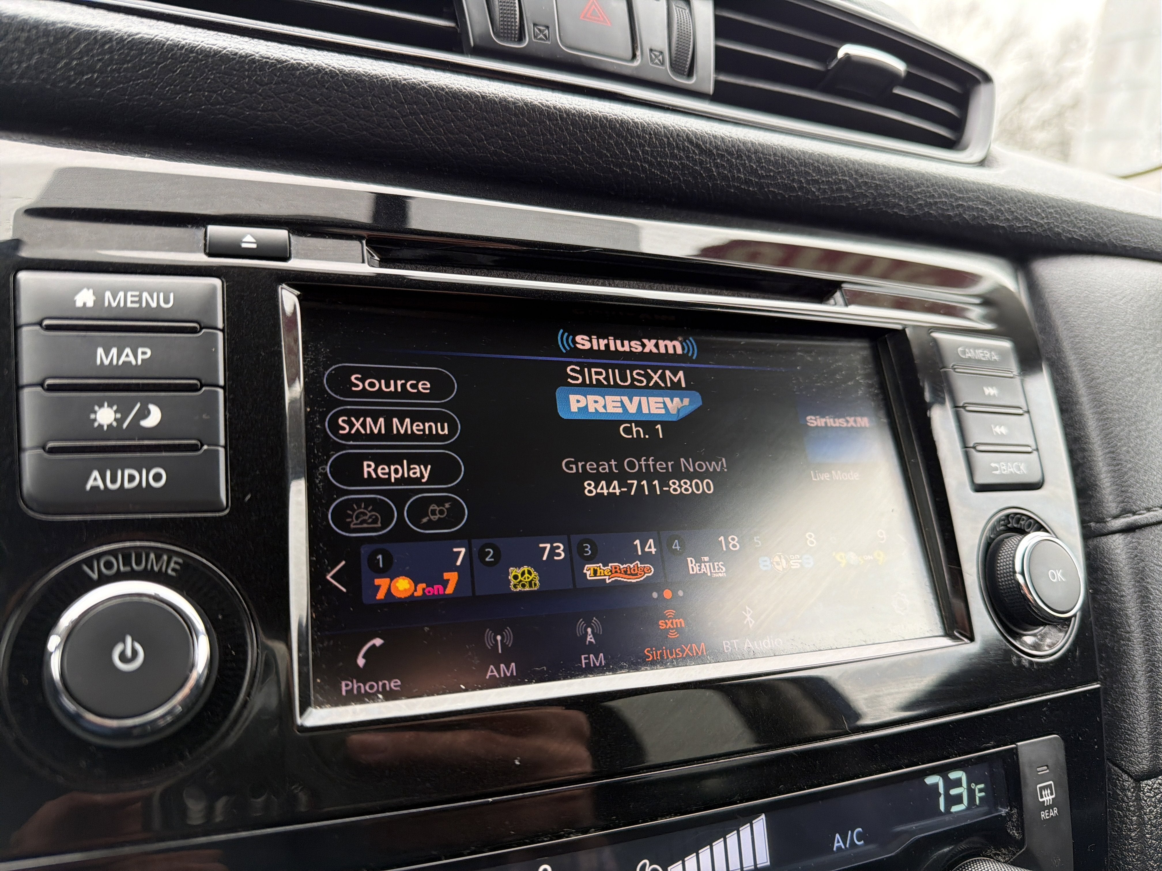 - Radio: AM/FM/reproductor CD/AUX -incluye: 6 altavoces, NissanConnect con compatibilidad para CarPlay de Apple y Android Auto, pantalla a color con control multitáctil de 7 plg, radio satélite SiriusXM con sistema avanzado de funciones de audio, entrada de conexión USB para iPod y otros dispositivos compatibles, sistema Bluetooth de teléfono a manos libres, difusión de audio mediante Bluetooth, mensajería de texto a manos libres y la actualización por aire (OTA) para el firmware de la unidad principal a través de una conexión Wifi WPA2