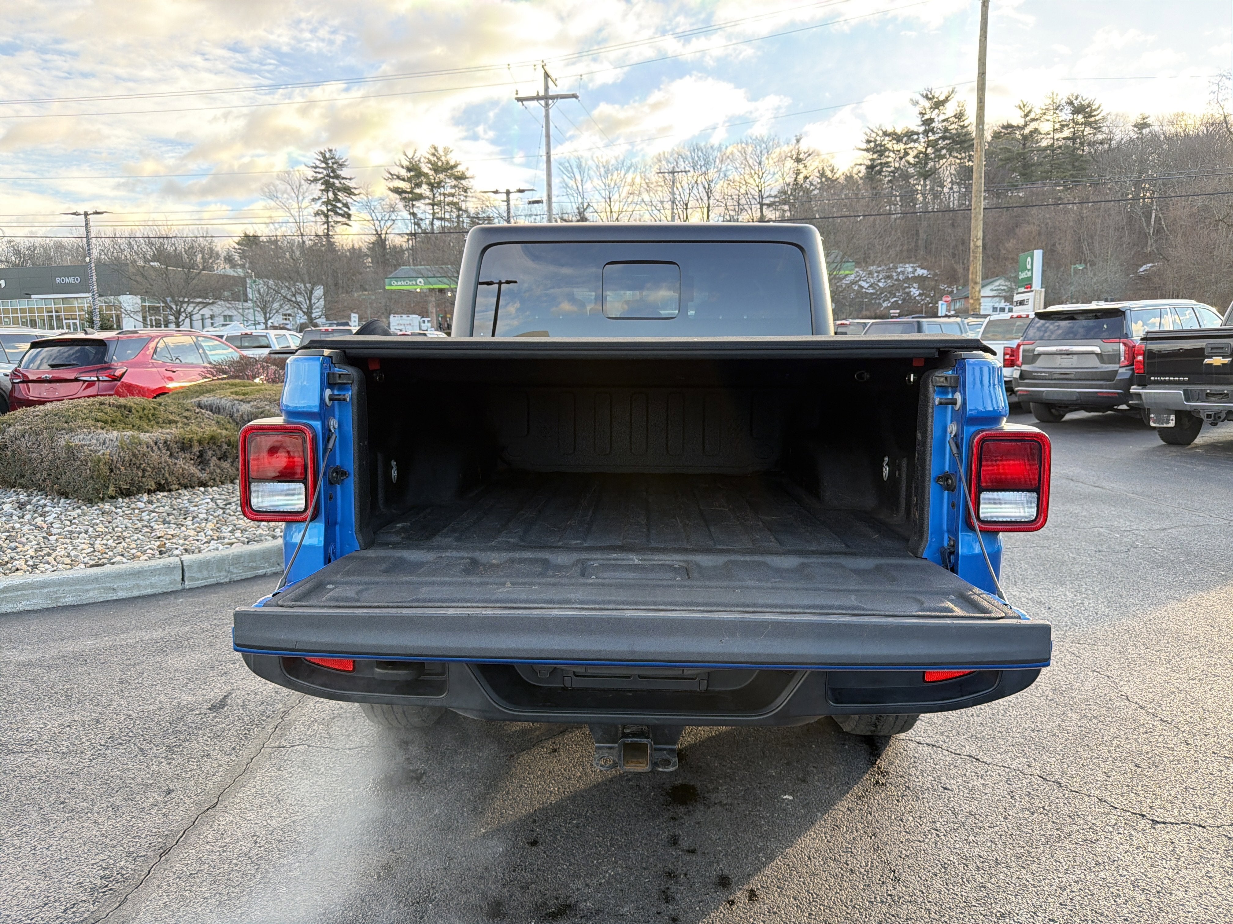 Romeo GM Center Proudly presents this 2020 Jeep Gladiator with Auxiliary Switch Group (240 Amp Alternator, 700 Amp Maintenance Free Battery, and Auxiliary Switches), Cold Weather Group (Heated Front Seats and Heated Steering Wheel), Convenience Group (Universal Garage Door Opener), Quick Order Package 24S (Automatic Headlamps, Deep Tint Sunscreen Windows, Front 1-Touch Down Power Windows, Leather Wrapped Steering Wheel, Normal Duty Plus Suspension, Power Heated Mirrors, Power Tailgate Lock, Remote Keyless Entry, Security Alarm, Speed Sensitive Power Locks, Sun Visors w/Illuminated Vanity Mirrors, and Wheels: 17" x 7.5" Tech Silver Aluminum), Technology Group (1-Year SiriusXM Radio Service, 7.0" Touch Screen Display, Air Conditioning w/Auto Temperature Control, Apple CarPlay, Cluster 7.0" TFT Color Display, For More Info, Call 800-643-2112, Google Android Auto, GPS Antenna Input, Integrated Center Stack Radio, Radio: Uconnect 4 w/7" Display, SiriusXM Satellite Radio, and USB Host Flip), Trailer Tow Package (Class IV Hitch Receiver, Heavy-Duty Engine Cooling, and Trailer Hitch Zoom), 110 mph Vehicle Max Speed Calibration, 220 Amp Alternator, 3.73 Rear Axle Ratio, 4-Wheel Disc Brakes, 8 Speakers, ABS brakes, Air Conditioning, All-Weather Slush Mats, Alpine Premium Audio System, AM/FM radio, Anti-Lock 4-Wheel Disc Heavy Duty Brakes, Black 3-Piece Hard Top, Brake assist, Cloth Low-Back Bucket Seats, Compass, Delay-off headlights, Driver door bin, Driver vanity mirror, Dual front impact airbags, Dual front side impact airbags, Electronic Stability Control, Freedom Panel Storage Bag, Front anti-roll bar, Front Bucket Seats, Front Center Armrest w/Storage, Front fog lights, Front reading lights, Integrated roll-over protection, Low tire pressure warning, No Soft Top, Normal Duty Suspension, Occupant sensing airbag, Outside temperature display, ParkView Rear Back-Up Camera, Passenger door bin, Passenger vanity mirror, Power steering, Radio data system, Radio: Uconnect 3 w/5" Display, Rear anti-roll bar, Rear reading lights, Rear Sliding Window, Rear Window Defroster, Speed control, Split folding rear seat, Spray In Bedliner, Steering wheel mounted audio controls, Tachometer, Telescoping steering wheel, Tilt steering wheel, Traction control, Trip computer, Variably intermittent wipers, and Wheels: 17" x 7.5" Black Steel Styled. Priced below KBB Fair Purchase Price!