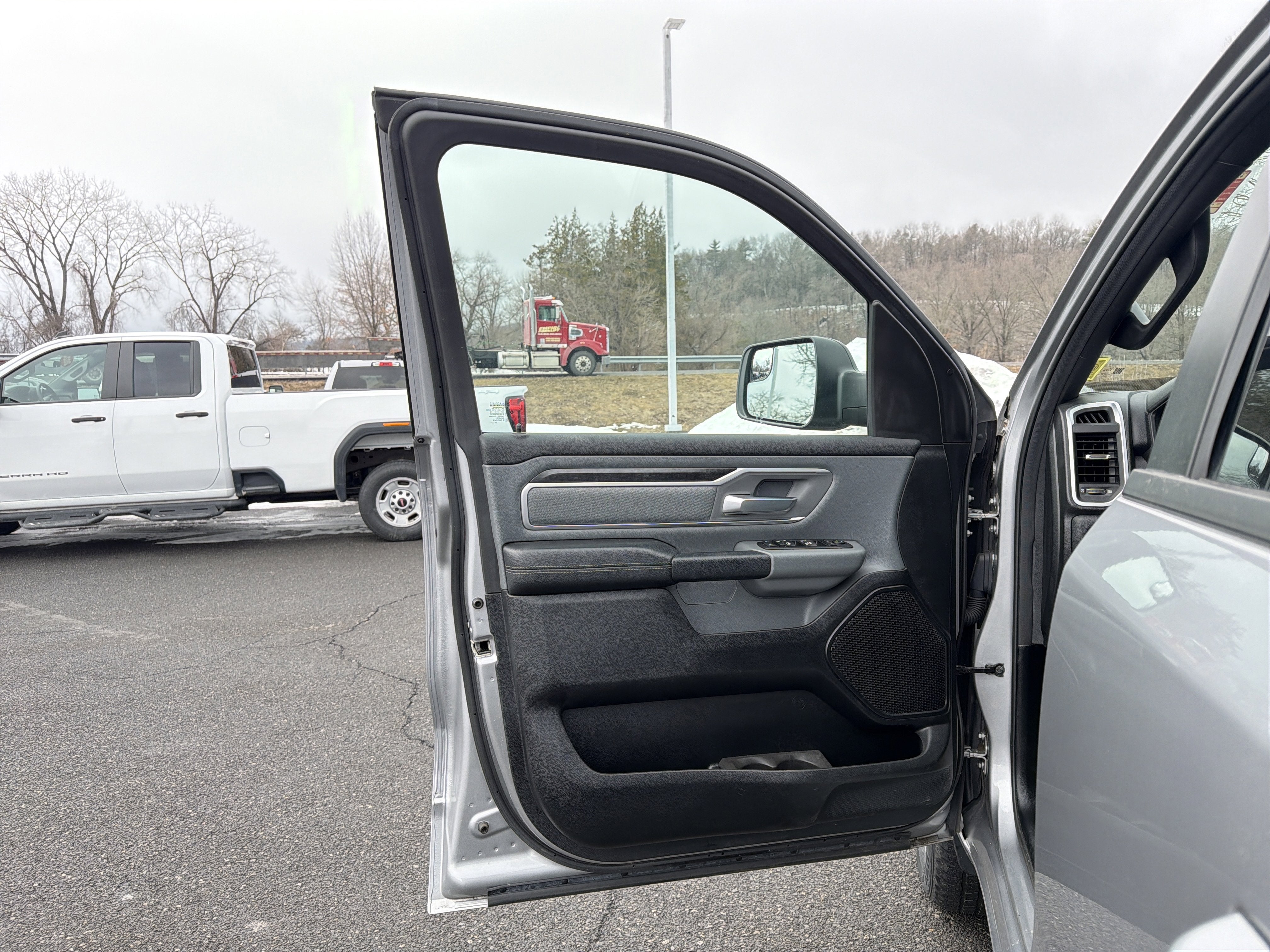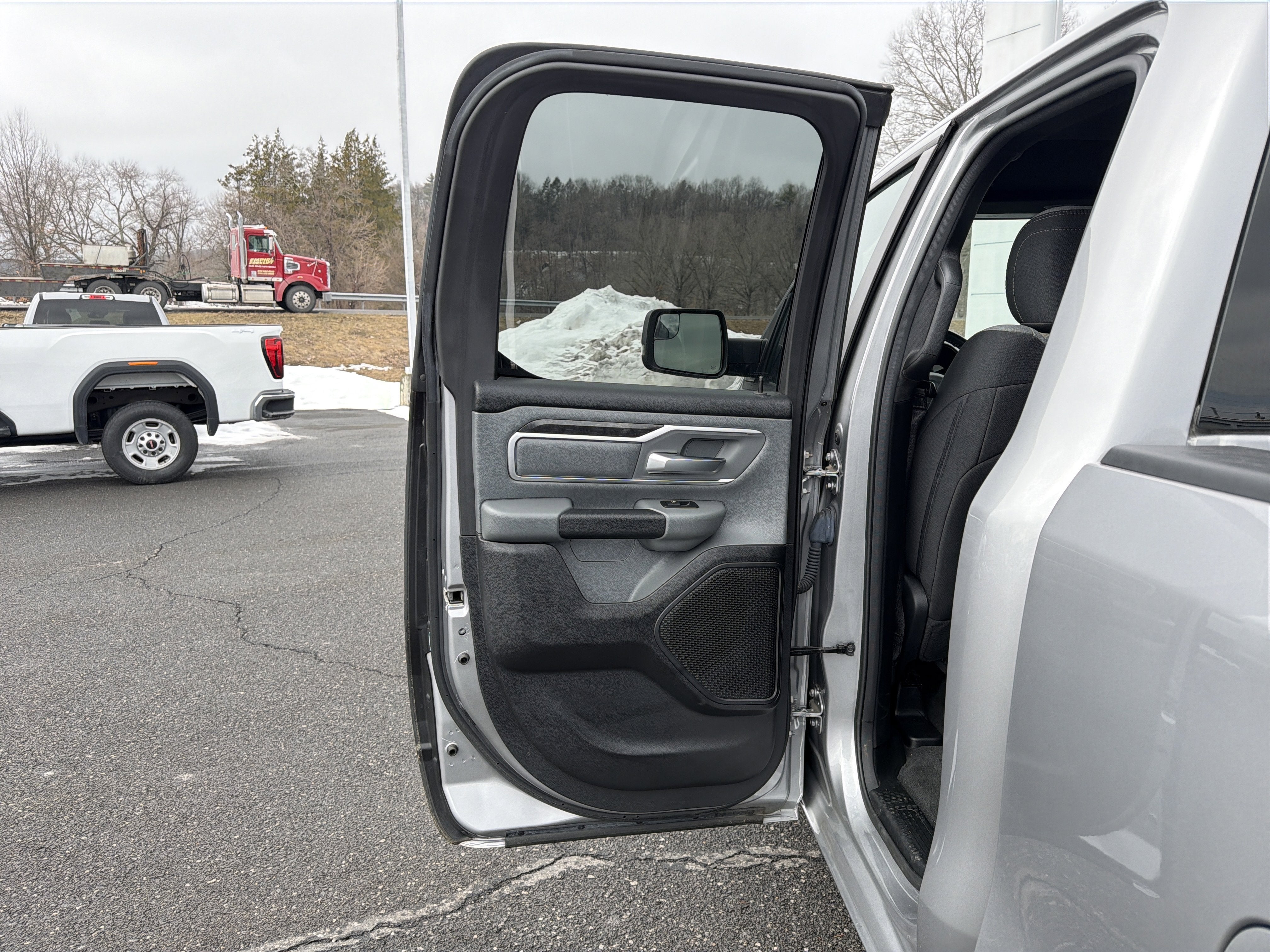 Romeo Nissan is proud to present this 2021 Ram 1500 with Big Horn Level 1 Equipment Group (Auto-Dimming Exterior Driver Mirror, Auto-Dimming Rear-View Mirror, Black Premium Power Mirrors, Class IV Receiver Hitch, Cluster 3.5 TFT Color Display, Exterior Mirrors Courtesy Lamps, Exterior Mirrors w/Supplemental Signals, Foam Bottle Insert (Door Trim Panel), For More Info, Call 800-643-2112, Glove Box Lamp, Power 4-Way Driver Lumbar Adjust, Power 8-Way Driver Seat, Power Adjustable Pedals, Power-Folding Mirrors, Radio: Uconnect 4 w/8.4 Display, Rear Dome w/On/Off Switch Lamp, Rear Power Sliding Window, Rear Window Defroster, SiriusXM Radio Service, SiriusXM Satellite Radio, Sun Visors w/Illuminated Vanity Mirrors, and Universal Garage Door Opener), Quick Order Package 25Z Big Horn (Big Horn Badge), 3 Rear Seat Head Restraints, 3.21 Rear Axle Ratio, 4 Way Front Headrests, 4-Wheel Disc Brakes, 40/20/40 Split Bench Seat, 48V Belt Starter Generator, 6 Speakers, ABS brakes, Air Conditioning, Alloy wheels, AM/FM radio, Anti-Spin Differential Rear Axle, Black Exterior Mirrors, Brake assist, Bumpers: chrome, Cloth Bench Seat, Compass, Delay-off headlights, Driver door bin, Dual front impact airbags, Dual front side impact airbags, Electronic Stability Control, Front anti-roll bar, Front Center Armrest w/Storage, Front fog lights, Front reading lights, Front Seat Back Map Pockets, Front wheel independent suspension, Fully automatic headlights, GPS Antenna Input, Heated door mirrors, Illuminated entry, Integrated Voice Command w/Bluetooth®, Leather steering wheel, Low tire pressure warning, Manual Adjust 4-Way Front Passenger Seat, MOPAR Front & Rear Rubber Floor Mats, Occupant sensing airbag, Outside temperature display, Overhead airbag, Overhead console, Panic alarm, ParkView Rear Back-Up Camera, Passenger door bin, Passenger vanity mirror, Power door mirrors, Power steering, Power windows, Radio data system, Radio: Uconnect 3 w/5 Display, Rear 60/40 Folding Seat, Rear anti-roll bar, Rear seat center armrest, Rear step bumper, Remote keyless entry, Speed control, Split folding rear seat, Steering wheel mounted audio controls, Tachometer, Telescoping steering wheel, Tilt steering wheel, Traction control, Trip computer, Variably intermittent wipers, Voltmeter, Wheels: 18 x 8 Cast-Aluminum Painted, and Wheels: 20 x 9 Aluminum Chrome Clad (WRK)