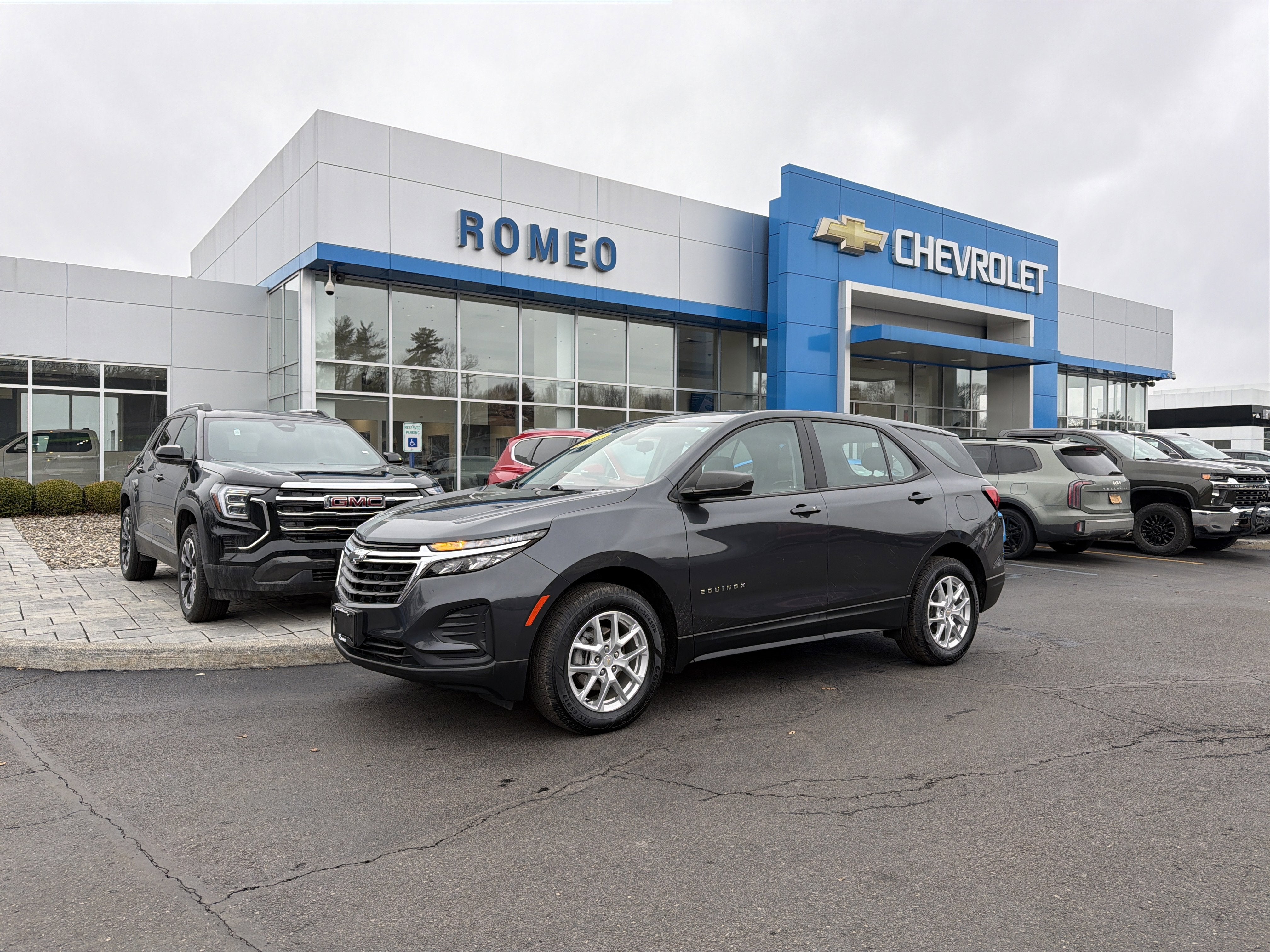 Romeo GM Center Proudly presents this 2022 Chevrolet Equinox with Preferred Equipment Group 1LS, 17" Aluminum Wheels, 2 Rear USB Charging-Only Ports, 2 USB Ports & Auxiliary Input Jack, 3.87 Final Drive Axle Ratio, 4-Way Manual Driver Seat Adjuster, 4-Wheel Disc Brakes, 6 Speaker Audio System Feature, 6 Speakers, ABS brakes, Air Conditioning, Alloy wheels, AM/FM radio: SiriusXM, Auto High-beam Headlights, Bluetooth®® For Phone, Brake assist, Bumpers: body-color, Compass, Delay-off headlights, Driver door bin, Driver vanity mirror, Dual front impact airbags, Dual front side impact airbags, Electronic Stability Control, Emergency communication system: OnStar and Chevrolet connected services capable, Four wheel independent suspension, Front & Rear Black Bowtie Emblems (LPO), Front anti-roll bar, Front Bucket Seats, Front Center Armrest, Front Passenger 4-Way Manual Seat Adjuster, Front reading lights, Fully automatic headlights, Heated door mirrors, Illuminated entry, Low tire pressure warning, Occupant sensing airbag, Outside temperature display, Overhead airbag, Overhead console, Panic alarm, Passenger door bin, Passenger vanity mirror, Power door mirrors, Power steering, Power windows, Premium audio system: Chevrolet Infotainment 3, Premium Cloth Seat Trim, Radio data system, Radio: Chevrolet Infotainment 3 System w/AM/FM, Rear anti-roll bar, Rear reading lights, Rear seat center armrest, Rear window defroster, Rear window wiper, Remote keyless entry, Security system, SiriusXM Radio, Speed control, Speed-sensing steering, Split folding rear seat, Spoiler, Steering wheel mounted audio controls, Tachometer, Telescoping steering wheel, Tilt steering wheel, Traction control, Trip computer, Variably intermittent wipers, and Wireless Apple CarPlay/Wireless Android Auto.