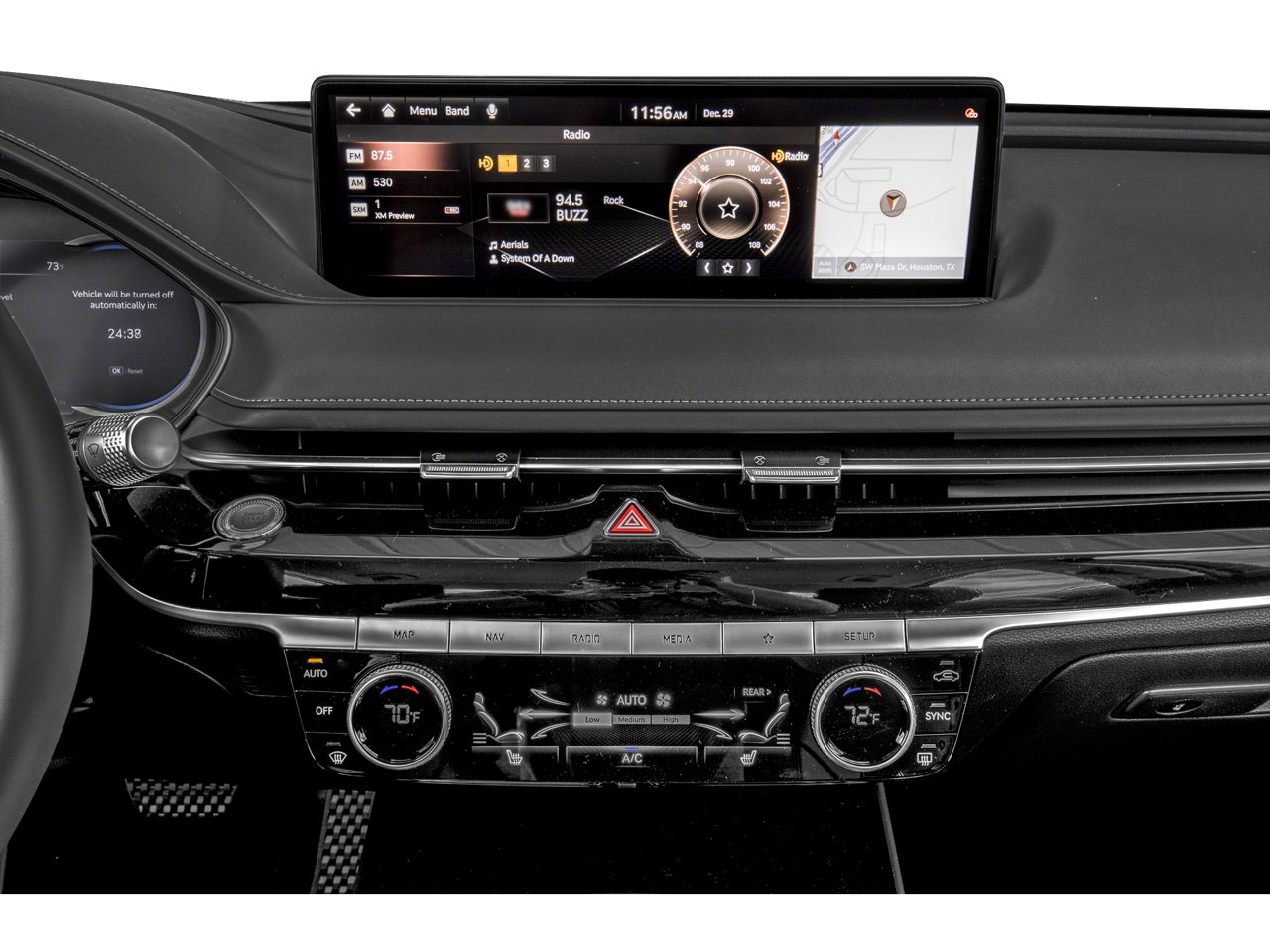 - Radio: Sistema de audio AM/FM/radio HD/radio satélite SiriusXM -incluye: sistema de audio premium con 12 altavoces y amplificador interno, sistema de navegación premium con pantalla LCD de alta definición de 14.5 plg, Genesis Connected Services, actualizaciones por aire, Android Auto y Apple CarPlay, entrada USB y sistema de teléfono a manos libres Bluetooth con difusión de audio