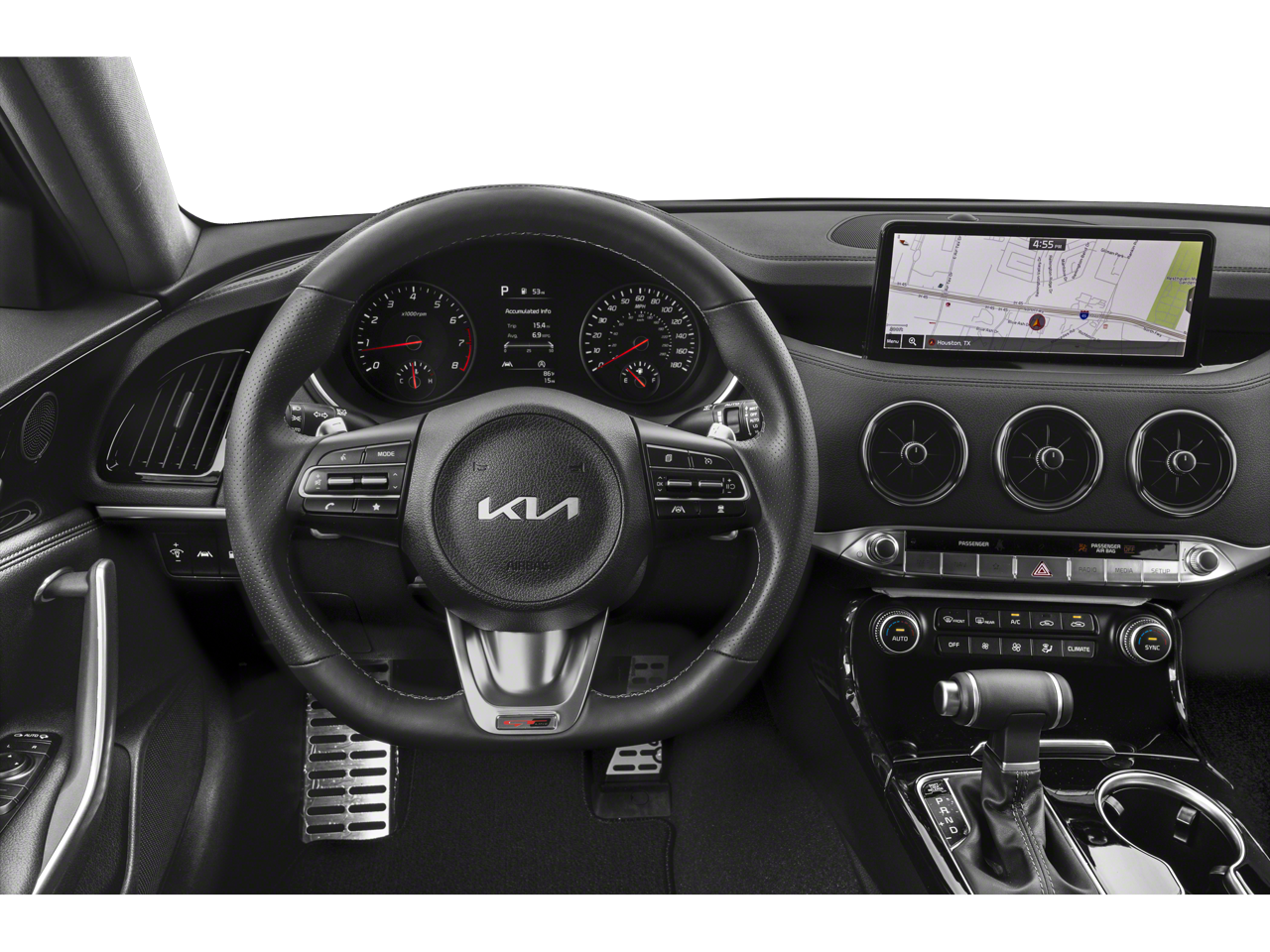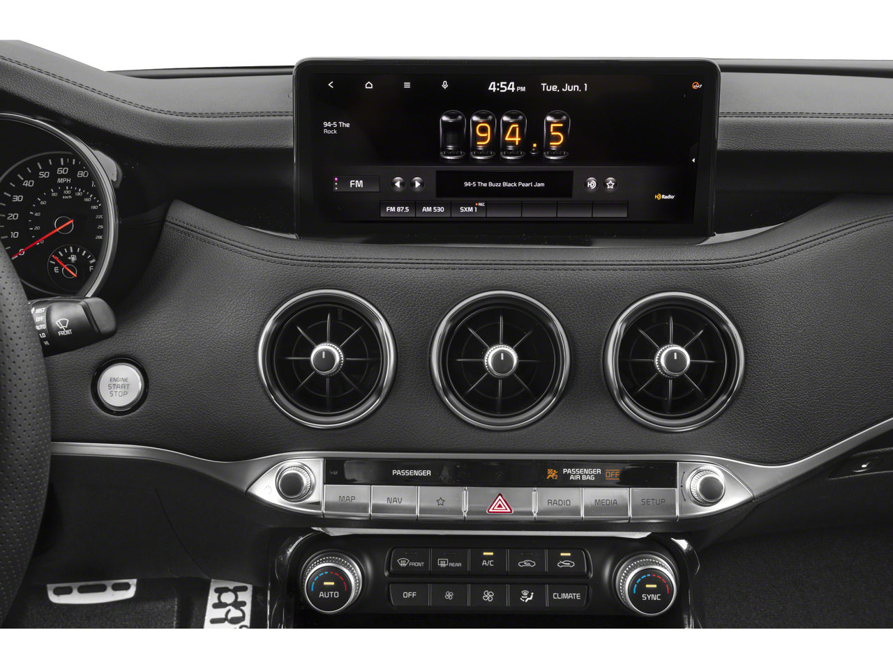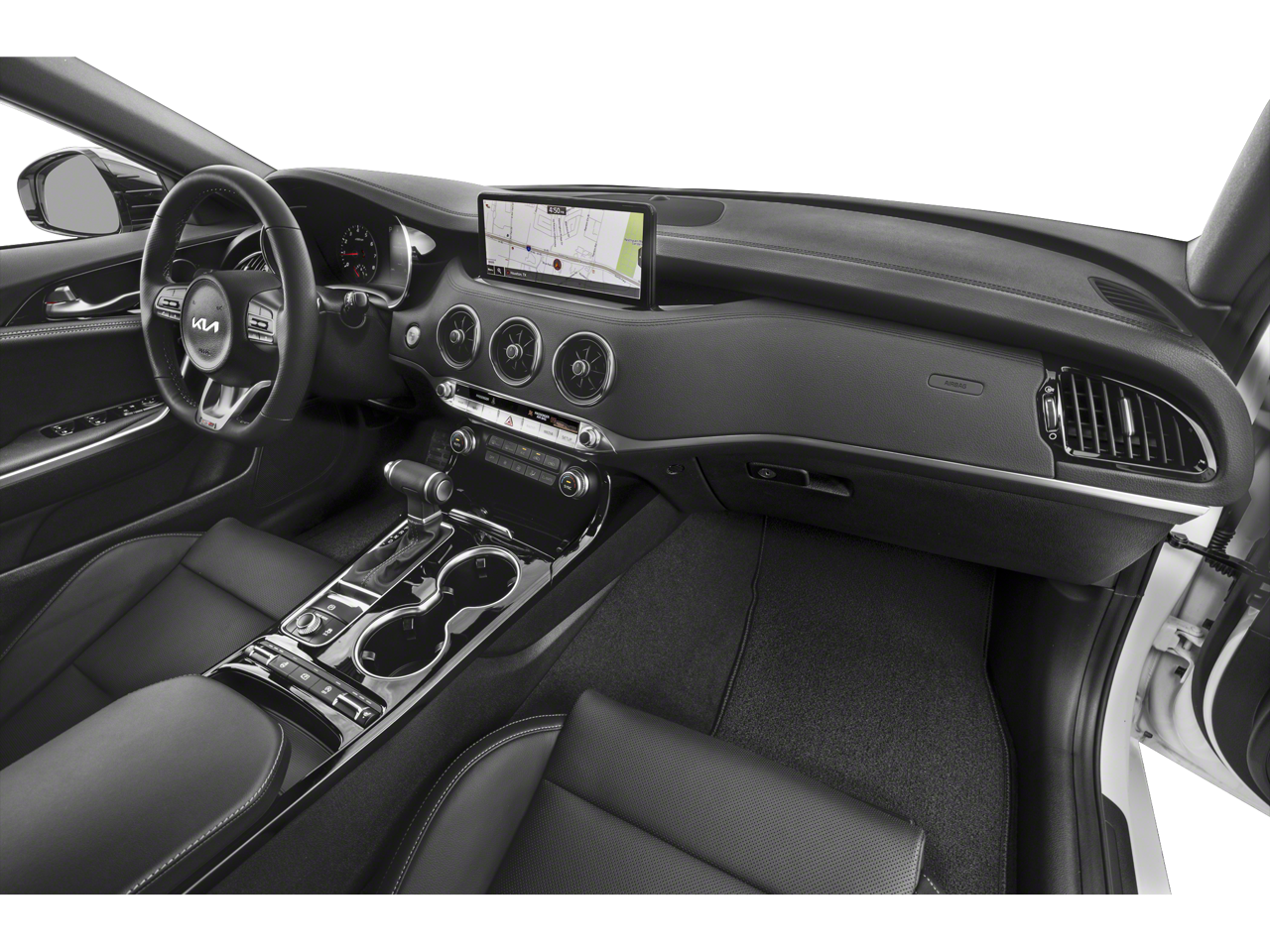 Romeo Kia proudly presents this 2022 Kia Stinger with Sun & Sound Package (8-Way Power Adjustable Passenger Seat, Power Tilt & Slide Sunroof w/1-Touch, and Radio: harmon/kardon AM/FM/HD Audio System), 4-Wheel Disc Brakes, 9 Speakers, ABS brakes, Air Conditioning, Alloy wheels, AM/FM radio: SiriusXM, Anti-whiplash front head restraints, Apple CarPlay & Android Auto, Auto High-beam Headlights, Auto-dimming Rear-View mirror, Automatic temperature control, Brake assist, Bumpers: body-color, Cargo Mat, Carpeted Floor Mat, Delay-off headlights, Driver door bin, Driver vanity mirror, Dual front impact airbags, Dual front side impact airbags, Electronic Stability Control, Emergency communication system: UVO eServices, Exterior Parking Camera Rear, Four wheel independent suspension, Front anti-roll bar, Front Bucket Seats, Front Center Armrest, Front dual zone A/C, Front reading lights, Fully automatic headlights, Heated door mirrors, Heated Front Bucket Seats, Heated front seats, Heated steering wheel, Illuminated entry, Knee airbag, Leather Seat Trim, Low tire pressure warning, Navigation System, Occupant sensing airbag, Outside temperature display, Overhead airbag, Overhead console, Panic alarm, Passenger door bin, Passenger vanity mirror, Power door mirrors, Power driver seat, Power steering, Power windows, Radio: AM/FM/HD Audio System, Rain sensing wipers, Rear air conditioning, Rear anti-roll bar, Rear seat center armrest, Rear window defroster, Remote keyless entry, Security system, Smart Key w/ Push Button and Remote Start, Speed control, Speed-Sensitive Wipers, Split folding rear seat, Sport steering wheel, Steering wheel mounted audio controls, Tachometer, Telescoping steering wheel, Tilt steering wheel, Traction control, Trip computer, Turn signal indicator mirrors, Variably intermittent wipers, and Wheels: 8.0J x 18 Alloy.