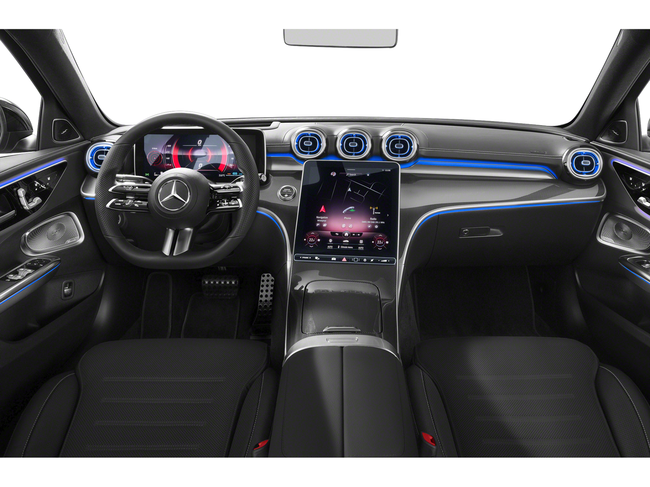 Romeo Volkswagen is proud to present this 2022 Mercedes-Benz C-Class with Premium Trim Package, 11.9 Center Touchscreen Display, 18 5-Spoke Wheels, 4-way Power Driver's Lumbar Support, 4-Wheel Disc Brakes, 5 Speakers, ABS brakes, Air Conditioning, Alloy wheels, AM/FM radio, Anti-whiplash front head restraints, Apple CarPlay®/Android Auto®, Auto High-beam Headlights, Auto tilt-away steering wheel, Auto-dimming door mirrors, Auto-dimming Rear-View mirror, Automatic temperature control, Brake assist, Bumpers: body-color, Child-Seat-Sensing Airbag, Compass, Delay-off headlights, Driver door bin, Driver vanity mirror, Dual front impact airbags, Dual front side impact airbags, Electronic Stability Control, Emergency communication system: Mercedes-Benz Emergency Call Service, Exterior Parking Camera Rear, Four wheel independent suspension, Front anti-roll bar, Front Bucket Seats, Front Center Armrest, Front dual zone A/C, Front reading lights, Fully automatic headlights, Garage door transmitter: HomeLink, Genuine wood dashboard insert, Head restraints memory, Heated door mirrors, Heated front seats, Illuminated entry, Knee airbag, Low tire pressure warning, MB-Tex Upholstery, Memory seat, Occupant sensing airbag, Outside temperature display, Overhead airbag, Overhead console, Panic alarm, Passenger door bin, Passenger vanity mirror, Power adjustable front head restraints, Power door mirrors, Power driver seat, Power Heated Front Seats w/Memory, Power moonroof, Power passenger seat, Power steering, Power windows, Premium audio system: MBUX, Radio data system, Radio: FrontBass 5-Speaker Audio System, Rain sensing wipers, Rear anti-roll bar, Rear fog lights, Rear reading lights, Rear seat center armrest, Rear window defroster, Remote keyless entry, Security system, Speed control, Speed-sensing steering, Split folding rear seat, Steering wheel memory, Steering wheel mounted audio controls, Tachometer, Telescoping steering wheel, Tilt steering wheel, Traction control, Trip computer, Turn signal indicator mirrors, Variably intermittent wipers, and Weather band radio.
