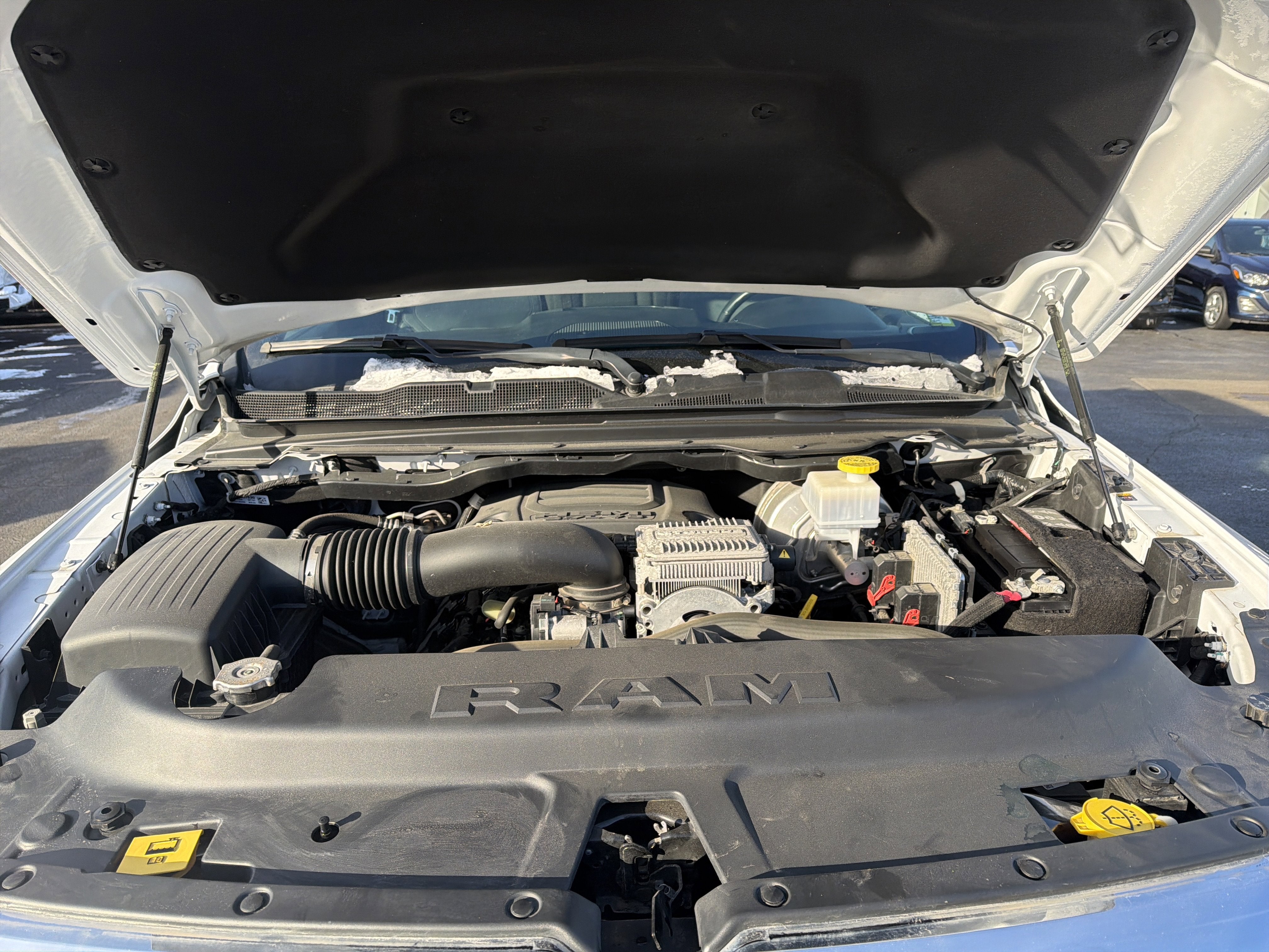 Romeo GM Center Proudly presents this 2022 Ram 1500 with Quick Order Package 27Z Big Horn (Big Horn Badge), Trailer Tow Group (Class IV Receiver Hitch, Trailer Brake Control, Trailer Light Check, and Trailer Tire Pressure Monitoring System), 3 Rear Seat Head Restraints, 3.21 Rear Axle Ratio, 4 Way Front Headrests, 4-Wheel Disc Brakes, 48V Belt Starter Generator, 6 Speakers, ABS brakes, Air Conditioning, Alloy wheels, AM/FM radio, Anti-Spin Differential Rear Axle, Black Exterior Mirrors, Brake assist, Bumpers: chrome, Cloth Bench Seat, Compass, Convex Wide-Angle Mirror Insert, Delay-off headlights, Driver door bin, Dual front impact airbags, Dual front side impact airbags, Electronic Stability Control, Emergency communication system: SiriusXM Guardian, Front anti-roll bar, Front Center Armrest w/Storage, Front fog lights, Front License Plate Bracket, Front reading lights, Front Seat Back Map Pockets, Front wheel independent suspension, Fully automatic headlights, Global Telematics Box Module (TBM), GPS Antenna Input, Heated door mirrors, Heavy-Duty Engine Cooling, Illuminated entry, Integrated Voice Command w/Bluetooth®, Leather steering wheel, Low tire pressure warning, Manufacturer's Statement of Origin, Occupant sensing airbag, Outside temperature display, Overhead airbag, Overhead console, Panic alarm, ParkView Rear Back-Up Camera, Passenger door bin, Passenger vanity mirror, Power door mirrors, Power steering, Power windows, Radio data system, Radio: Uconnect 3 w/5" Display, Radio: Uconnect 5 W w/8.4" Display, Rear 60/40 Folding Seat, Rear anti-roll bar, Rear seat center armrest, Rear step bumper, Remote keyless entry, Remote Start System, Speed control, Split folding rear seat, Steering wheel mounted audio controls, Tachometer, Telescoping steering wheel, Tilt steering wheel, Traction control, Trip computer, Variably intermittent wipers, Voltmeter, Wheels: 18" x 8" Cast-Aluminum Painted, and Wheels: 20" x 9" Aluminum Chrome Clad (WRK) Priced below KBB Fair Purchase Price!