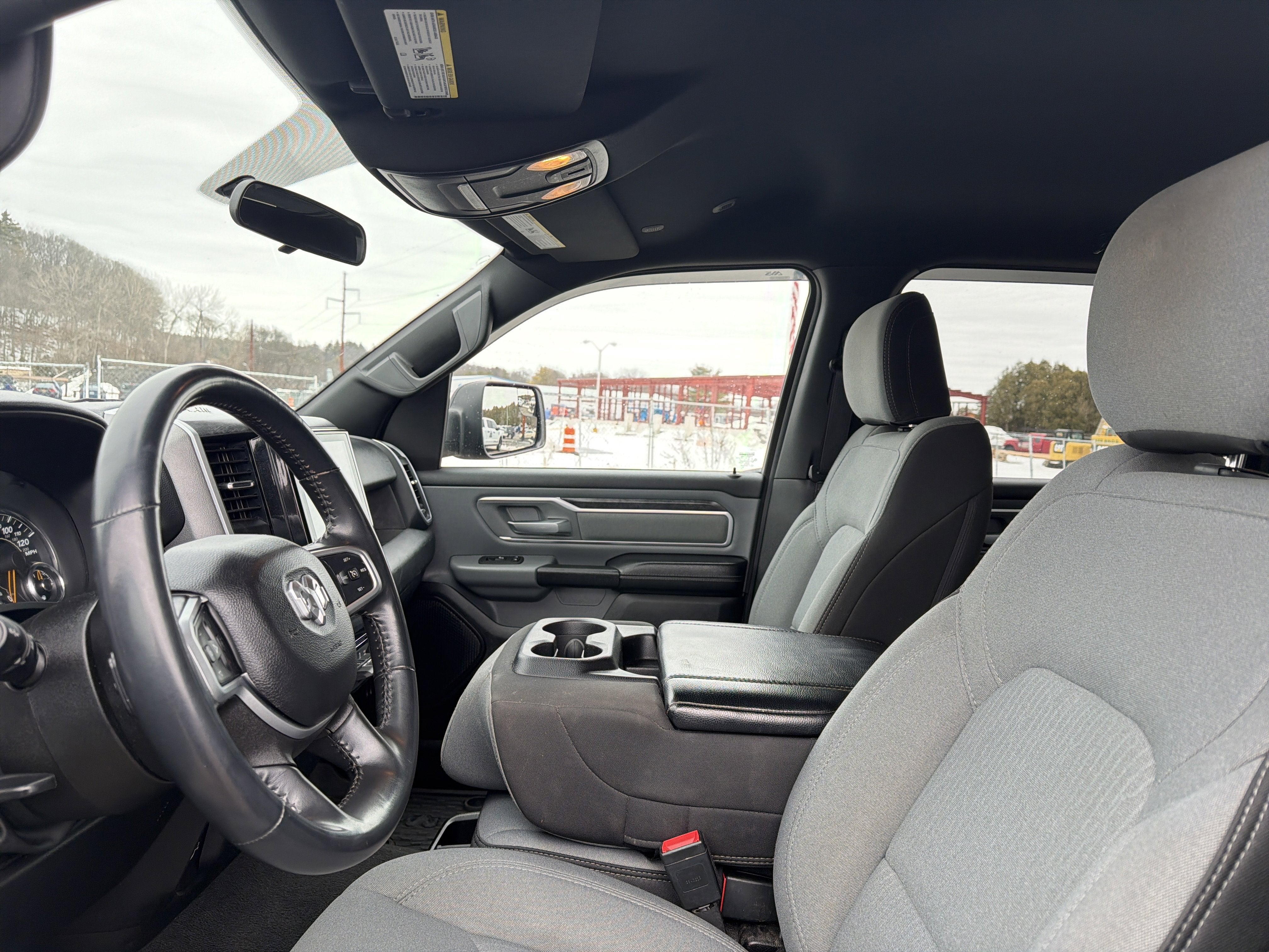 Romeo Nissan is proud to present this 2022 Ram 1500 with Quick Order Package 27Z Big Horn (Big Horn Badge), 3 Rear Seat Head Restraints, 3.21 Rear Axle Ratio, 4 Way Front Headrests, 4-Wheel Disc Brakes, 48V Belt Starter Generator, 6 Speakers, ABS brakes, Air Conditioning, Alloy wheels, AM/FM radio, Black Exterior Mirrors, Brake assist, Bumpers: chrome, Cloth Bench Seat, Compass, Convex Wide-Angle Mirror Insert, Delay-off headlights, Driver door bin, Dual front impact airbags, Dual front side impact airbags, Electronic Stability Control, Emergency communication system: SiriusXM Guardian, Front anti-roll bar, Front Center Armrest w/Storage, Front fog lights, Front License Plate Bracket, Front reading lights, Front Seat Back Map Pockets, Front wheel independent suspension, Fully automatic headlights, Global Telematics Box Module (TBM), GPS Antenna Input, Heated door mirrors, Heavy-Duty Engine Cooling, Illuminated entry, Integrated Voice Command w/Bluetooth®, Leather steering wheel, Low tire pressure warning, MOPAR Front & Rear Rubber Floor Mats, Occupant sensing airbag, Outside temperature display, Overhead airbag, Overhead console, Panic alarm, ParkView Rear Back-Up Camera, Passenger door bin, Passenger vanity mirror, Power door mirrors, Power steering, Power windows, Radio data system, Radio: Uconnect 3 w/5 Display, Rear 60/40 Folding Seat, Rear anti-roll bar, Rear seat center armrest, Rear step bumper, Remote keyless entry, Remote Start System, Speed control, Split folding rear seat, Steering wheel mounted audio controls, Tachometer, Telescoping steering wheel, Tilt steering wheel, Traction control, Trip computer, Variably intermittent wipers, Voltmeter, Wheels: 18 x 8 Cast-Aluminum Painted, and Wheels: 20 x 9 Aluminum Chrome Clad (WRK)