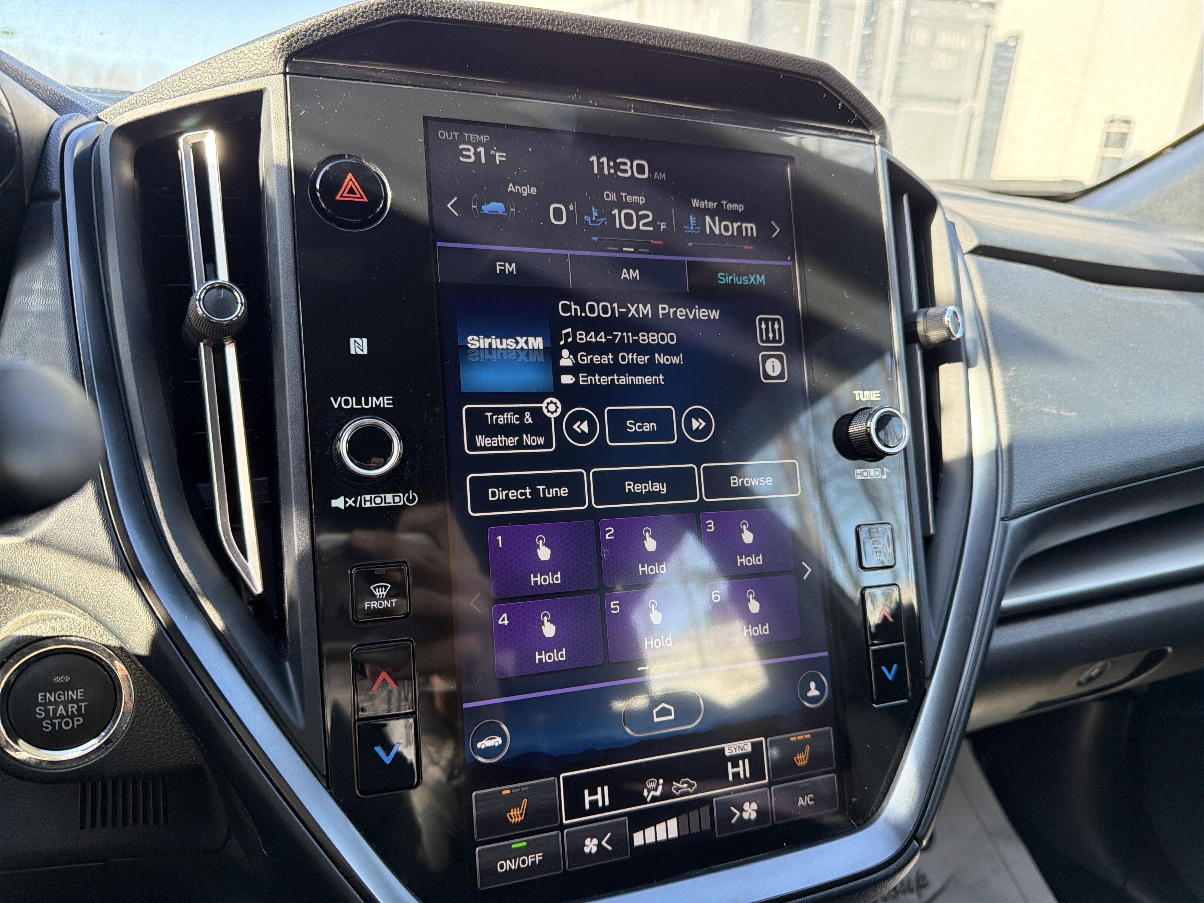 - Radio: Subaru STARLINK 11.6" Multimedia Plus Sys -inc: AM/FM stereo HD Radio, multi-touch gesture high resolution display screen, voice activated controls, Bluetooth® audio streaming connectivity, Bluetooth® hands-free phone connectivity, Bluetooth® hands-free SMS text messaging connectivity (applicable w/compatible cell phone), Near Field Communication (NFC), iPod control capability, rear-vision camera display, SiriusXM All Access radio (4 months free trial/subscription required after), SiriusXM Travel Link (4 months free trial/subscription required after), smartphone integration: Android Auto, CarPlay, STARLINK cloud applications, 6 speakers and roof mounted audio and satellite antenna