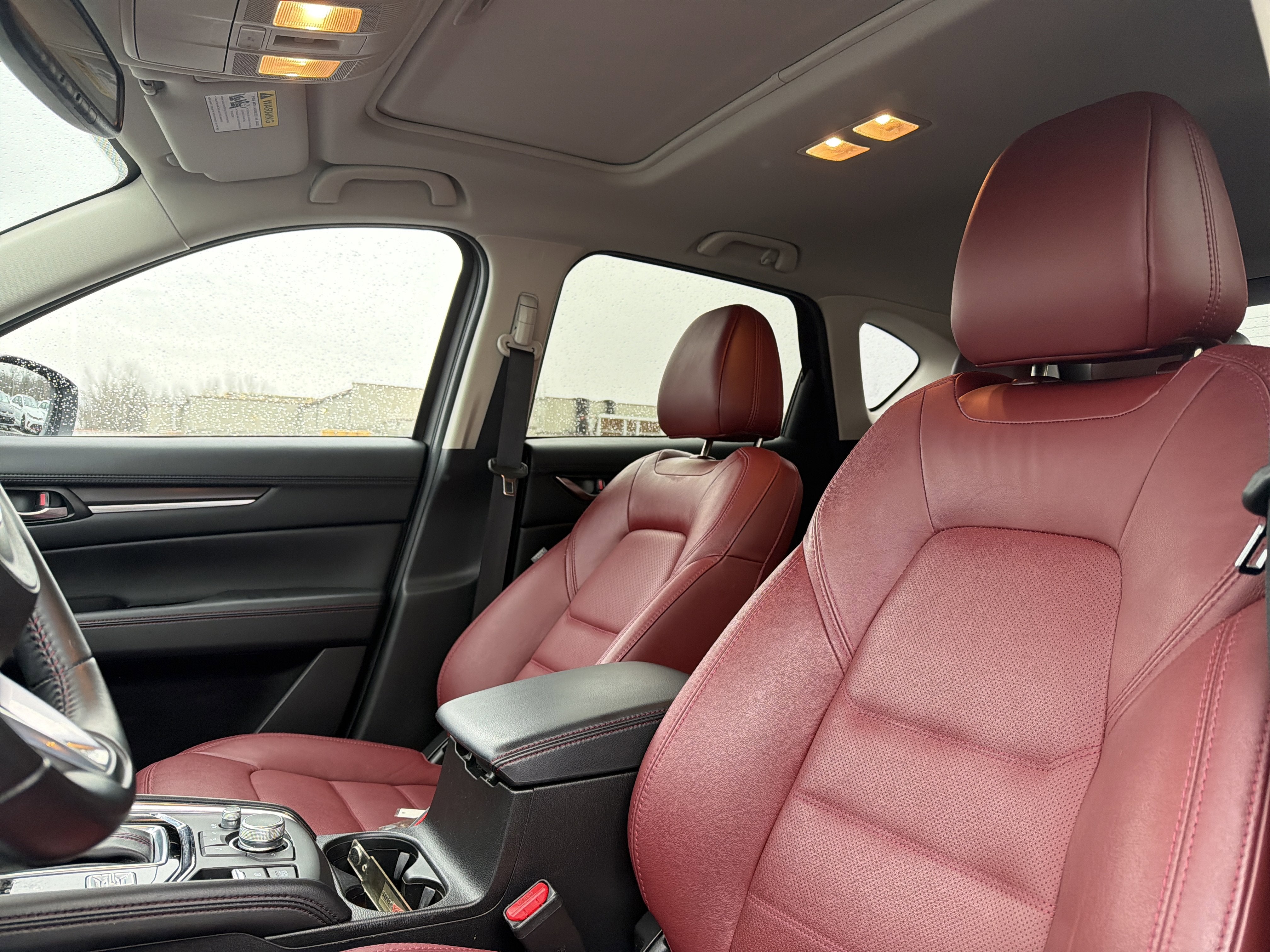 Romeo Volkswagen is proud to present this 2023 Mazda CX-5 with 10 Speakers, 4-Wheel Disc Brakes, 4.624 Axle Ratio, ABS brakes, Air Conditioning, Alloy wheels, AM/FM radio, AppLink/Apple CarPlay and Android Auto, Auto High-beam Headlights, Auto-dimming Rear-View mirror, Automatic temperature control, Black Lug Nuts & Black Wheel Locks, Brake assist, Bumpers: body-color, Delay-off headlights, Driver door bin, Driver vanity mirror, Dual front impact airbags, Dual front side impact airbags, E911 Automatic Emergency Notification, Electronic Stability Control, Emergency communication system: MAZDA CONNECT, Exterior Parking Camera Rear, Four wheel independent suspension, Front anti-roll bar, Front Bucket Seats, Front Center Armrest w/Storage, Front dual zone A/C, Front reading lights, Fully automatic headlights, Garage door transmitter: HomeLink, Heated Front Bucket Seats, Heated front seats, Illuminated entry, Infotainment System Voice Command, Leather Seat Trim, Leather Shift Knob, Low tire pressure warning, Memory seat, Multifunction Commander Control, Occupant sensing airbag, Outside temperature display, Overhead airbag, Overhead console, Pandora, Panic alarm, Passenger door bin, Passenger vanity mirror, Power door mirrors, Power driver seat, Power Liftgate, Power moonroof, Power passenger seat, Power steering, Power windows, Radio Broadcast Data System Program Information, Radio data system, Radio: AM/FM/HD Audio System, Rain sensing wipers, Rear anti-roll bar, Rear Bumper Guard, Rear reading lights, Rear seat center armrest, Rear window defroster, Rear window wiper, Remote keyless entry, SMS Text Msg Audio Delivery & Reply, Speed control, Speed-sensing steering, Split folding rear seat, Spoiler, Steering wheel mounted audio controls, Tachometer, Telescoping steering wheel, Tilt steering wheel, Traction control, Trip computer, Turn signal indicator mirrors, Variably intermittent wipers, and Wheels: 19 x 7J Aluminum Alloy.