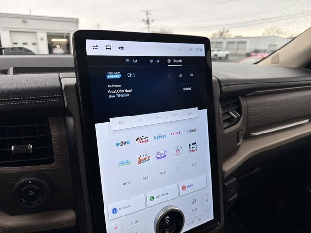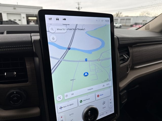 Romeo Ford of Kingston proudly presents this 2023 Ford Expedition with Equipment Group 302A High Package (Ebony Black Mesh Grille, Heavy-Duty Independent Suspension, Magnetic-Painted Power Deployable Running Boards, Panoramic Vista Roof, Power-Folding Sideview Mirrors w/Autofold, and Wheels: 22 12-Spoke Polished Aluminum), Heavy-Duty Trailer Tow Package (26mm Engine Radiator, 360-Degree Camera w/Trailer Reverse Guidance, Integrated Trailer Brake Controller, and Pro Trailer Backup Assist), 12 Speakers, 15.5 LCD Capacitive Touchscreen, 360-Degree Camera w/Split View, 3rd row seats: split-bench, 4-Wheel Disc Brakes, ABS brakes, Adjustable pedals, Air Conditioning, Alloy wheels, AM/FM radio: SiriusXM with 360L, Auto High-beam Headlights, Auto-dimming door mirrors, Auto-dimming Rear-View mirror, Automatic temperature control, Brake assist, Bumpers: body-color, Compass, Connected Built-In Navigation, Delay-off headlights, Driver door bin, Driver vanity mirror, Dual front impact airbags, Dual front side impact airbags, Electronic Stability Control, Emergency communication system: SYNC 4 911 Assist, Exterior Parking Camera Rear, Four wheel independent suspension, Front anti-roll bar, Front Bucket Seats, Front Center Armrest, Front dual zone A/C, Front fog lights, Front reading lights, Fully automatic headlights, Garage door transmitter, Hands-Free Foot-Activated Liftgate Removal (DISC), Heated & Ventilated Leather Front Captain's Chairs, Heated door mirrors, Heated front seats, Heated rear seats, Heated steering wheel, Illuminated entry, Instrument Panel Cluster, Leather steering wheel, Low tire pressure warning, Memory seat, Navigation system: Connected Navigation, Occupant sensing airbag, Outside temperature display, Overhead airbag, Overhead console, Panic alarm, Passenger door bin, Passenger vanity mirror, Pedal memory, Power door mirrors, Power driver seat, Power Liftgate, Power moonroof, Power passenger seat, Power steering, Power windows, Radio data system, Radio: B&O Sound System by Bang & Olufsen, Rain sensing wipers, Rear air conditioning, Rear anti-roll bar, Rear reading lights, Rear window defroster, Rear window wiper, Reclining 3rd row seat, Remote keyless entry, Reverse Brake Assist, Second Row Power Windows Removal, Security system, SiriusXM w/360L, Speed control, Speed-sensing steering, Speed-Sensitive Wipers, Split folding rear seat, Spoiler, Steering wheel memory, Steering wheel mounted audio controls, SYNC 4 w/Enhanced Voice Recognition, SYNC 4A w/Enhanced Voice Recognition, Tachometer, Telescoping steering wheel, Tilt steering wheel, Traction control, Trip computer, Turn signal indicator mirrors, Variably intermittent wipers, Ventilated front seats, Voltmeter, and Wheels: 20 Bright Machined Aluminum.