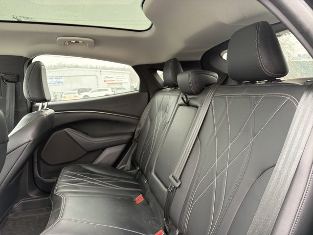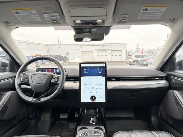 Romeo Ford of Kingston proudly presents this 2023 Ford Mustang Mach-E with Equipment Group 200A, Interior Protection Package (Pre-Installed) (1st & 2nd Row Floor Liners w/o Carpet Mats and Cargo Floor Liner), 4-Wheel Disc Brakes, 6 Speakers, ABS brakes, Air Conditioning, Alloy wheels, AM/FM radio: SiriusXM with 360L, AM/FM Stereo, Apple CarPlay/Android Auto, Auto High-beam Headlights, Auto-dimming Rear-View mirror, Automatic temperature control, Axle Ratio: 9.05, Brake assist, Bumpers: body-color, Compass, Delay-off headlights, Driver door bin, Driver vanity mirror, Dual front impact airbags, Dual front side impact airbags, Electronic Stability Control, Emergency communication system: 911 Assist, Exterior Parking Camera Rear, Four wheel independent suspension, Front anti-roll bar, Front Bucket Seats, Front Center Armrest, Front dual zone A/C, Front License Plate Bracket, Front reading lights, Fully automatic headlights, Garage door transmitter, Heated ActiveX Bucket Seats, Heated door mirrors, Heated front seats, Heated steering wheel, Illuminated entry, Knee airbag, Low tire pressure warning, Memory seat, Navigation system: Connected Navigation, Occupant sensing airbag, Outside temperature display, Overhead airbag, Overhead console, Panic alarm, Passenger door bin, Passenger vanity mirror, Power door mirrors, Power driver seat, Power steering, Power windows, Radio data system, Rain sensing wipers, Rear anti-roll bar, Rear seat center armrest, Rear side impact airbag, Rear window defroster, Rear window wiper, Remote keyless entry, Security system, SiriusXM Radio w/360L, Speed control, Speed-sensing steering, Speed-Sensitive Wipers, Split folding rear seat, Spoiler, Steering wheel mounted audio controls, SYNC 4A w/Enhanced Voice Recognition, Telescoping steering wheel, Tilt steering wheel, Traction control, Trip computer, Turn signal indicator mirrors, Variably intermittent wipers, Wheel Lock Kit, and Wheels: 18 High Gloss Black Aluminum.