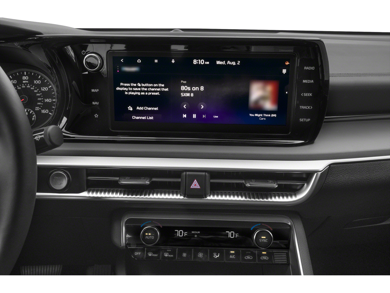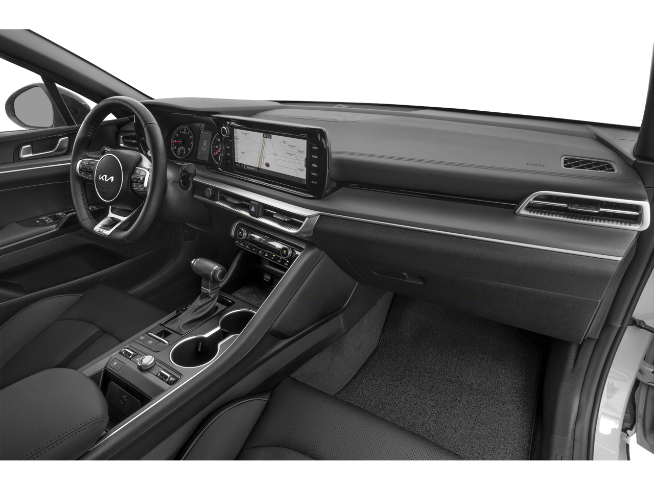 Romeo Kia proudly presents this 2023 Kia K5 with GT-Line Panoramic Sunroof Package (Gloss Black Pillar & Door Frame Cover, LED Interior Lighting, and Panoramic Sunroof), GT-Line Premium Package (Forward Collision Avoidance-Assist, Highway Driving Assist, LED Projection Headlamps, and Smart Cruise Control w/Stop & Go), 4-Wheel Disc Brakes, 6 Speakers, ABS brakes, Air Conditioning, Alloy wheels, AM/FM radio: SiriusXM, Apple CarPlay & Android Auto, Auto High-beam Headlights, Automatic temperature control, Brake assist, Bumpers: body-color, Cargo Mat, Cargo Net, Carpeted Floor Mats, Cloth/SynTex Seat Trim, Delay-off headlights, Driver door bin, Driver vanity mirror, Dual front impact airbags, Dual front side impact airbags, Electronic Stability Control, Four wheel independent suspension, Front anti-roll bar, Front Bucket Seats, Front Center Armrest, Front dual zone A/C, Front fog lights, Front reading lights, Fully automatic headlights, Heated door mirrors, Heated Front Bucket Seats, Heated front seats, Heated steering wheel, Illuminated entry, Knee airbag, Low tire pressure warning, Mud Guards, Navigation System, Occupant sensing airbag, Outside temperature display, Overhead airbag, Overhead console, Panic alarm, Passenger door bin, Passenger vanity mirror, Power door mirrors, Power driver seat, Power steering, Power windows, Radio data system, Radio: AM/FM/MP3 Audio System, Rear anti-roll bar, Rear seat center armrest, Rear side impact airbag, Rear window defroster, Remote keyless entry, Security system, Speed control, Speed-sensing steering, Split folding rear seat, Spoiler, Sport steering wheel, Steering wheel mounted audio controls, Tachometer, Telescoping steering wheel, Tilt steering wheel, Traction control, Trip computer, Trunk Cargo Management System, Turn signal indicator mirrors, Variably intermittent wipers, Wheel Locks, and Wheels: 18 Gloss Black Machined Finish Alloy.