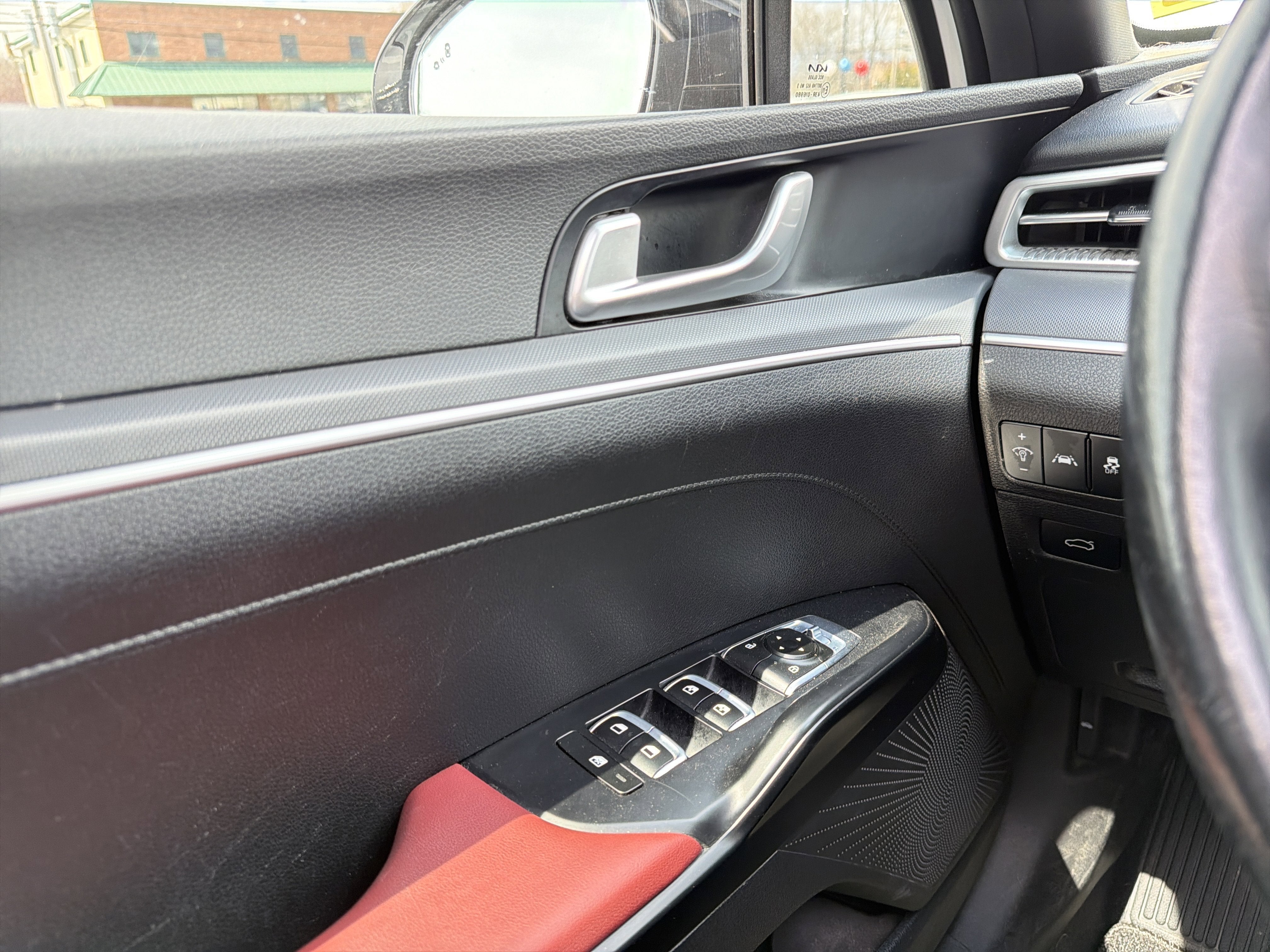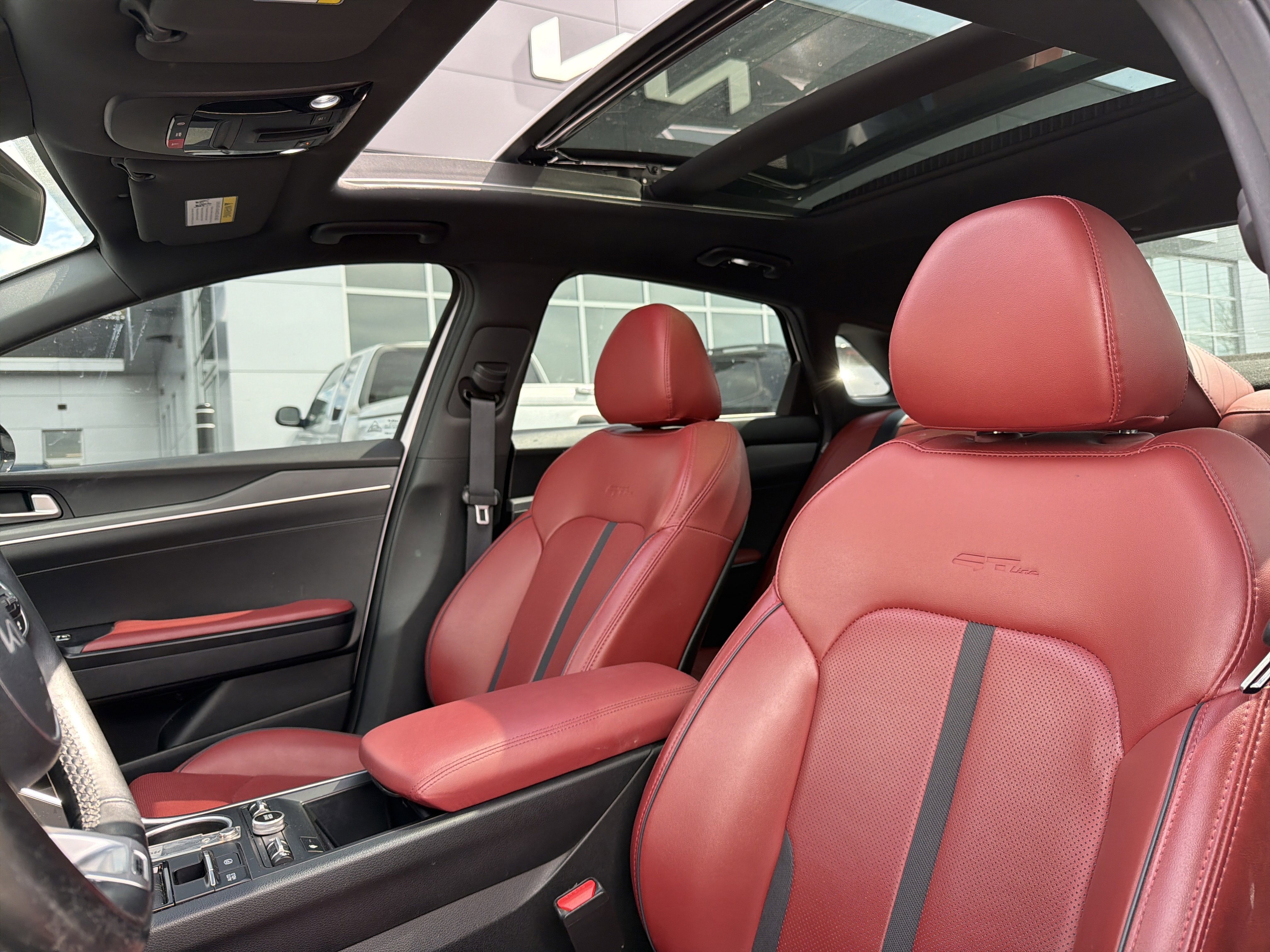 Romeo Kia proudly presents this 2023 Kia K5 with GT-Line Panoramic Sunroof Package (Gloss Black Pillar & Door Frame Cover, LED Interior Lighting, and Panoramic Sunroof), GT-Line Premium Package (Forward Collision Avoidance-Assist, Highway Driving Assist, LED Projection Headlamps, and Smart Cruise Control w/Stop & Go), GT-Line Red Interior Package, 4-Wheel Disc Brakes, 6 Speakers, ABS brakes, Air Conditioning, Alloy wheels, AM/FM radio: SiriusXM, Apple CarPlay & Android Auto, Auto High-beam Headlights, Automatic temperature control, Brake assist, Bumpers: body-color, Cargo Mat, Cargo Net, Carpeted Floor Mats, Cloth/SynTex Seat Trim, Delay-off headlights, Driver door bin, Driver vanity mirror, Dual front impact airbags, Dual front side impact airbags, Electronic Stability Control, Four wheel independent suspension, Front anti-roll bar, Front Bucket Seats, Front Center Armrest, Front dual zone A/C, Front fog lights, Front reading lights, Fully automatic headlights, Heated door mirrors, Heated Front Bucket Seats, Heated front seats, Heated steering wheel, Illuminated entry, Knee airbag, Low tire pressure warning, Mud Guards, Navigation System, Occupant sensing airbag, Outside temperature display, Overhead airbag, Overhead console, Panic alarm, Passenger door bin, Passenger vanity mirror, Power door mirrors, Power driver seat, Power steering, Power windows, Radio data system, Radio: AM/FM/MP3 Audio System, Rear anti-roll bar, Rear seat center armrest, Rear side impact airbag, Rear window defroster, Remote keyless entry, Security system, Speed control, Speed-sensing steering, Split folding rear seat, Spoiler, Sport steering wheel, Steering wheel mounted audio controls, Tachometer, Telescoping steering wheel, Tilt steering wheel, Traction control, Trip computer, Trunk Cargo Management System, Turn signal indicator mirrors, Variably intermittent wipers, Wheel Locks, and Wheels: 18 Gloss Black Machined Finish Alloy.