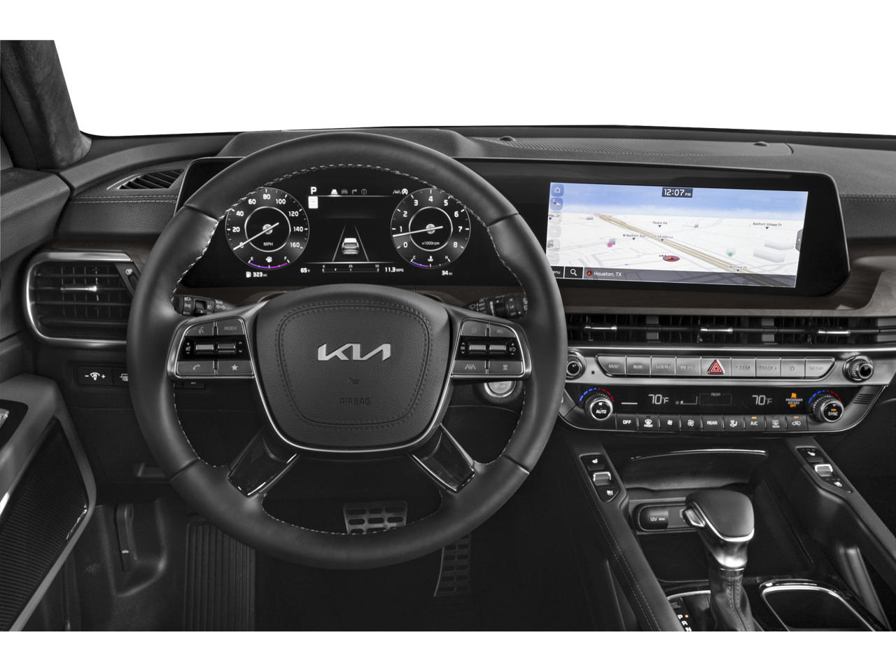 Romeo Kia proudly presents this 2023 Kia Telluride with 10 Speakers, 3.648 Axle Ratio, 3rd row seats: split-bench, 4-Wheel Disc Brakes, ABS brakes, Air Conditioning, Alloy wheels, AM/FM radio: SiriusXM, Apple CarPlay & Android Auto, Auto High-beam Headlights, Auto-dimming Rear-View mirror, Auto-leveling suspension, Automatic temperature control, Brake assist, Bumpers: body-color, Carpet Floor Mats, Compass, Delay-off headlights, Driver door bin, Driver vanity mirror, Dual front impact airbags, Dual front side impact airbags, Electronic Stability Control, Emergency communication system: 911 Connect, Exterior Parking Camera Rear, Four wheel independent suspension, Front anti-roll bar, Front Bucket Seats, Front Center Armrest, Front dual zone A/C, Front fog lights, Front reading lights, Fully automatic headlights, Garage door transmitter: HomeLink, harman/kardon® Speakers, Heads-Up Display, Heated & Ventilated Front Bucket Seats, Heated door mirrors, Heated front seats, Heated rear seats, Heated steering wheel, Illuminated entry, Knee airbag, Leather Shift Knob, Leather steering wheel, Low tire pressure warning, Memory seat, Navigation System, Occupant sensing airbag, Outside temperature display, Overhead airbag, Overhead console, Panic alarm, Passenger door bin, Passenger vanity mirror, Power door mirrors, Power driver seat, Power Liftgate, Power moonroof, Power passenger seat, Power steering, Power windows, Premium Nappa Leather Seat Trim, Radio data system, Radio: AM/FM harman/kardon Audio System, Rain sensing wipers, Rear air conditioning, Rear anti-roll bar, Rear audio controls, Rear reading lights, Rear side impact airbag, Rear window defroster, Rear window wiper, Reclining 3rd row seat, Remote keyless entry, Roof rack: rails only, Security system, Smart Key w/ Push Button and Remote Start, Speed control, Speed-sensing steering, Split folding rear seat, Spoiler, Steering wheel mounted audio controls, Tachometer, Telescoping steering wheel, Tilt steering wheel, Traction control, Trip computer, Turn signal indicator mirrors, Variably intermittent wipers, Ventilated front seats, Ventilated rear seats, and Wheels: 20 x 7.5 Black Finish X-LINE Exclusive.