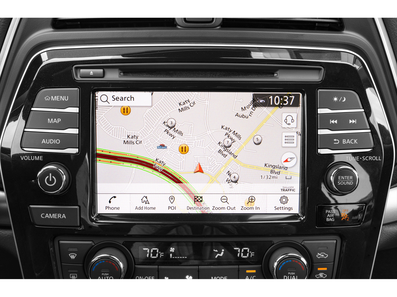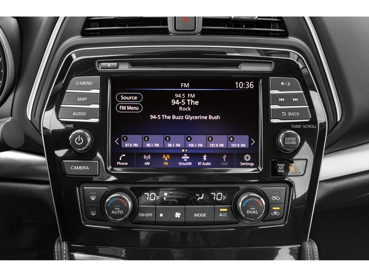 - Radio: Sistema de audio AM/FM/CD -incluye: reproductor de MP3/WMA/auxiliar, 8 altavoces, NissanConnect con pantalla a color de 8 plg con control multitáctil, Apple CarPlay, Android Auto, 2 entradas USB delanteras iluminadas (1 tipo A, 1 tipo C), sistema Bluetooth de teléfono a manos libres, asistencia de mensajes de texto a manos libres, difusión de audio mediante Bluetooth, reconocimiento de voz, Siri Eyes Free, radio SiriusXM, radio SiriusXM con funciones de audio avanzadas, servicios NissanConnect con tecnología de SiriusXM, punto de acceso inalámbrico, sistema de navegación Nissan de puerta a puerta, información de tráfico SiriusXM Traffic, información de tráfico SiriusXM Travel Link, botón de control de visualización en la pantalla y pantalla de asistencia de conducción avanzada de 7 plg