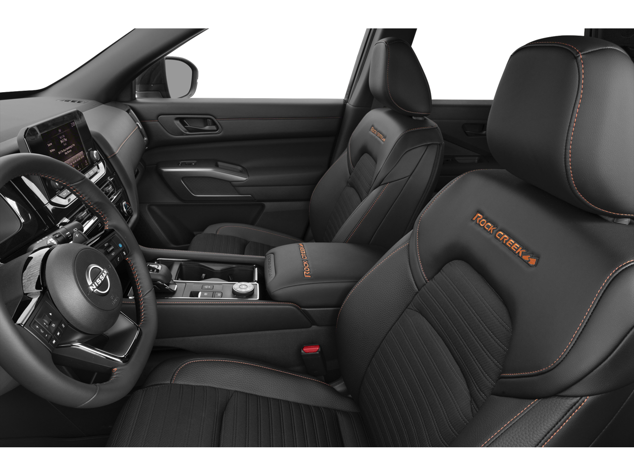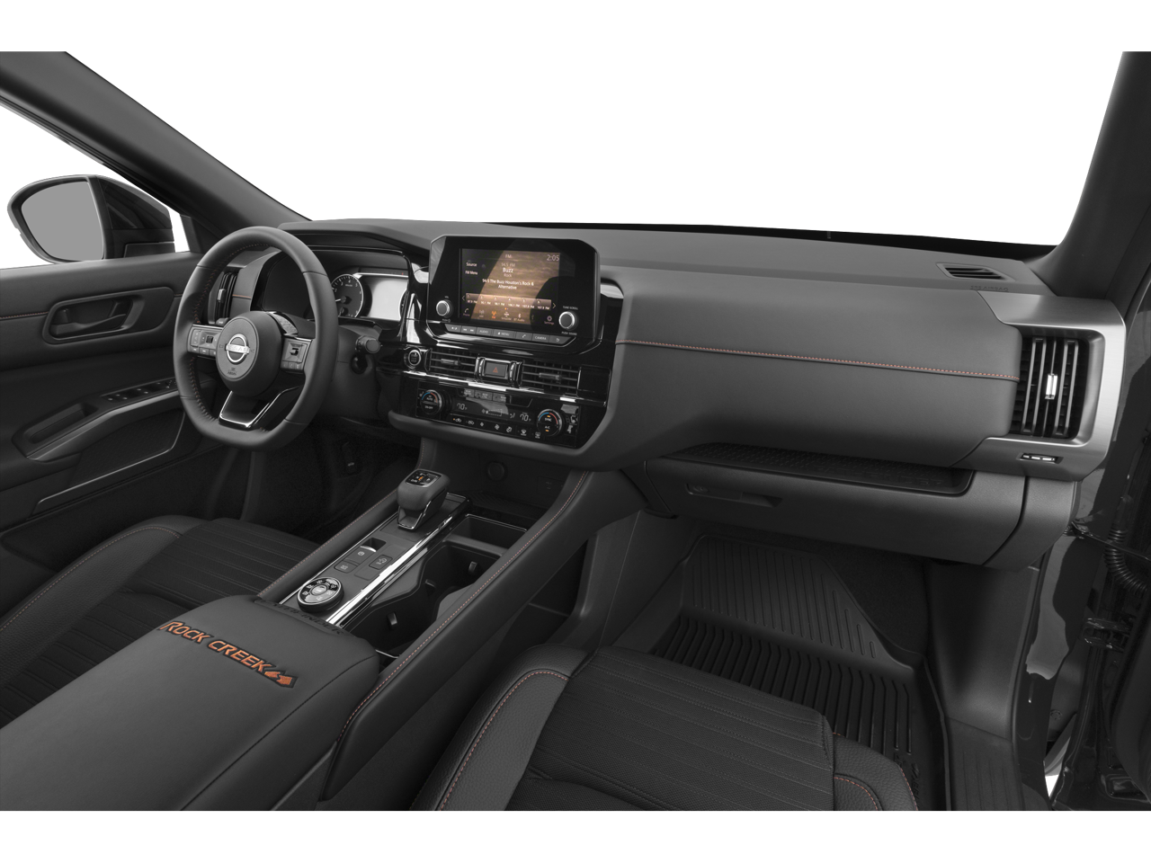 Romeo Nissan is proud to present this 2023 Nissan Pathfinder with 3rd row seats: bench, 4-Wheel Disc Brakes, 6 Speakers, ABS brakes, Air Conditioning, Alloy wheels, AM/FM radio: SiriusXM, Auto High-beam Headlights, Automatic temperature control, Axle Ratio: 4.334, Black Splash Guards (Set of 4), Brake assist, Delay-off headlights, Driver door bin, Driver vanity mirror, Dual front impact airbags, Dual front side impact airbags, Electronic Stability Control, Emergency communication system: NissanConnect Services, Four wheel independent suspension, Front anti-roll bar, Front Bucket Seats, Front Center Armrest, Front dual zone A/C, Front fog lights, Front reading lights, Fully automatic headlights, Heated door mirrors, Heated Front Bucket Seats, Heated front seats, Illuminated entry, Knee airbag, Leather steering wheel, Leatherette Seating Surfaces, Low tire pressure warning, NissanConnect featuring Apple CarPlay and Android Auto, Occupant sensing airbag, Outside temperature display, Overhead airbag, Overhead console, Panic alarm, Passenger door bin, Passenger vanity mirror, Power door mirrors, Power driver seat, Power steering, Power windows, Radio data system, Radio: AM/FM Audio System w/NissanConnect, Rear air conditioning, Rear anti-roll bar, Rear Parking Sensors, Rear reading lights, Rear side impact airbag, Rear window defroster, Rear window wiper, Reclining 3rd row seat, Remote keyless entry, Rock Creek AS Floor Liners & Cargo Area Protector, Rock Creek Roof Rack, Roof rack, Security system, Speed control, Speed-sensing steering, Split folding rear seat, Spoiler, Steering wheel mounted audio controls, Tachometer, Telescoping steering wheel, Tilt steering wheel, Traction control, Trip computer, Turn signal indicator mirrors, Variably intermittent wipers, and Wheels: 18 Beadlock Styled Design.
