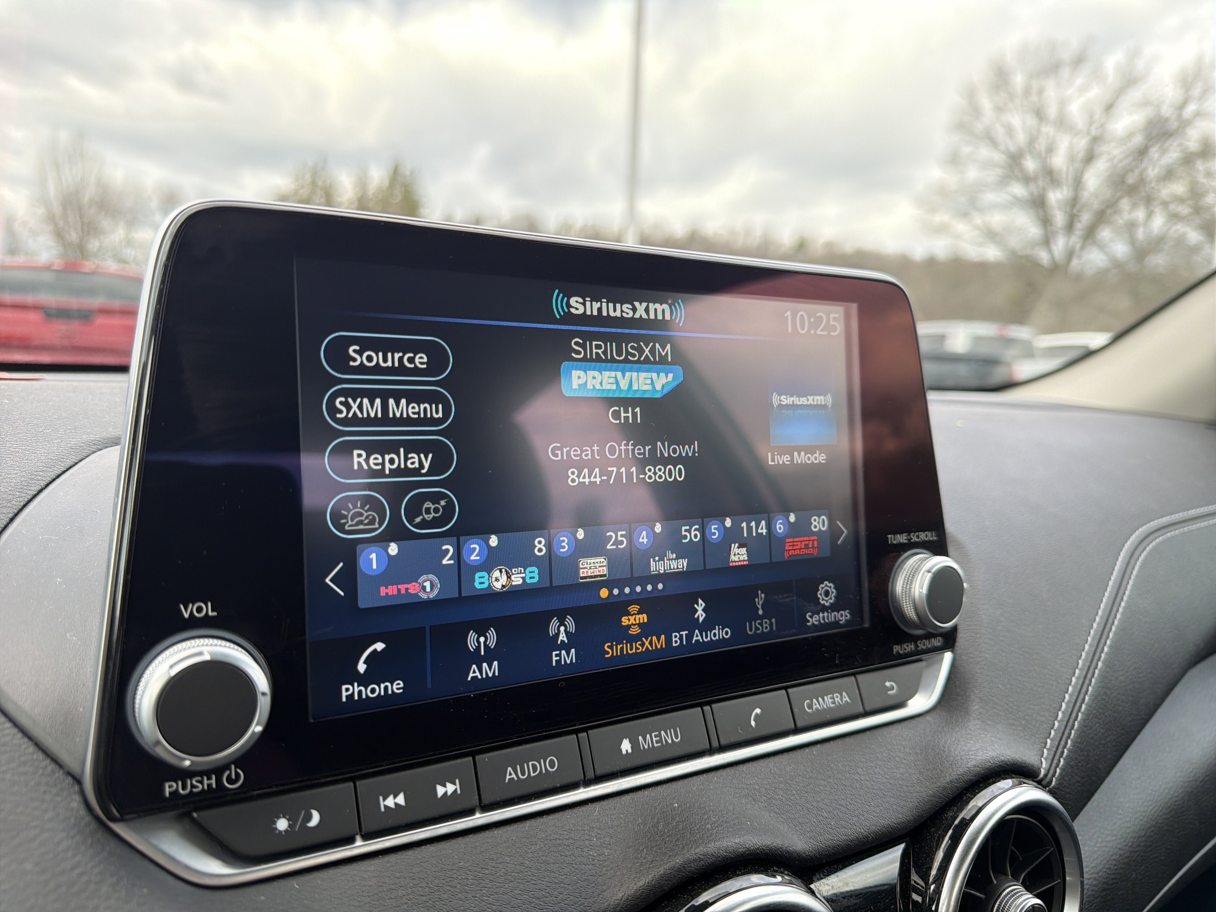 - Radio: AM/FM con sistema de radio datos/reproductor de MP3/entrada auxiliar -incluye: 6 altavoces más 2 altavoces de altos en el pilar A, pantalla a color de 8 plg con control multitáctil, difusión de audio mediante Bluetooth, sistema Bluetooth de teléfono a manos libres, asistencia de mensajes de texto a manos libres, Siri Eyes Free, reconocimiento de voz Google Assistant con Apple CarPlay y Android Auto, NissanConnect, 1 entrada USB de tipo A, 1 entrada USB delantera adicional (tipo C) y 1 entrada USB de carga solamente (tipo A) en la consola central, y radio satélite SiriusXM con funciones de audio avanzadas