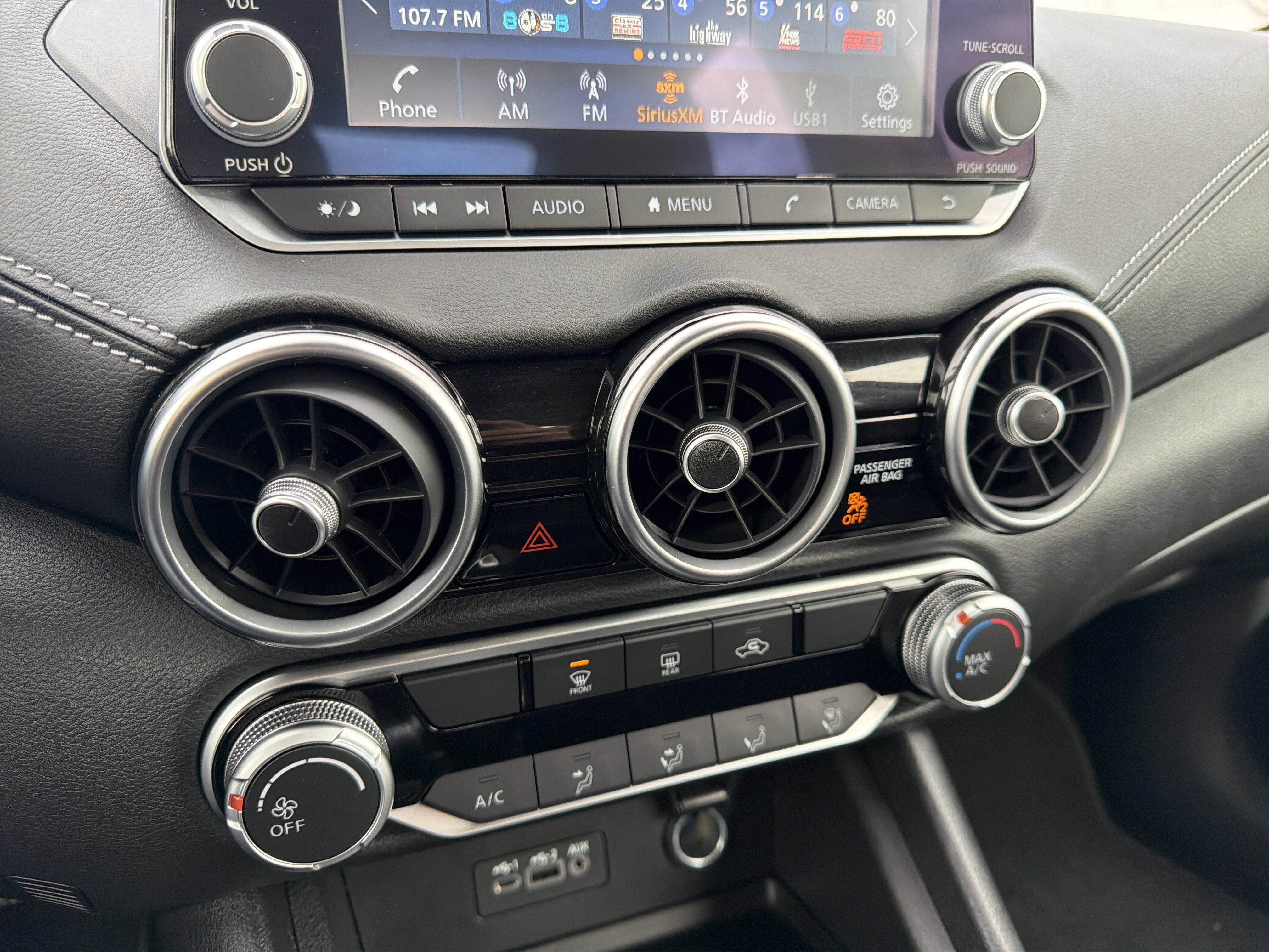 - Radio: AM/FM con sistema de radio datos/reproductor de MP3/entrada auxiliar -incluye: 6 altavoces más 2 altavoces de altos en el pilar A, pantalla a color de 8 plg con control multitáctil, difusión de audio mediante Bluetooth, sistema Bluetooth de teléfono a manos libres, asistencia de mensajes de texto a manos libres, Siri Eyes Free, reconocimiento de voz Google Assistant con Apple CarPlay y Android Auto, NissanConnect, 1 entrada USB de tipo A, 1 entrada USB delantera adicional (tipo C) y 1 entrada USB de carga solamente (tipo A) en la consola central, y radio satélite SiriusXM con funciones de audio avanzadas