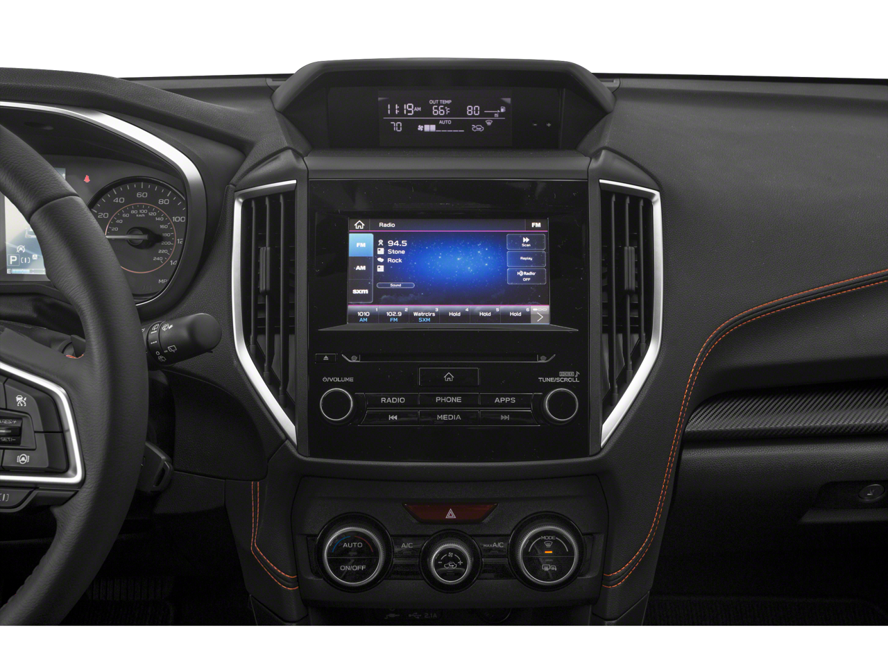 - Radio: Sistema de multimedios STARLINK Plus de Subaru con pantalla de 6.5 plg -incluye: AM/FM estéreo, radio HD, reproductor de CD con compatibilidad con archivos MP3/WMA/CRR/RW, pantalla multitáctil de alta resolución por gestos, controles activados por voz, difusión de audio mediante Bluetooth y conectividad de teléfono a manos libres, conectividad para mensajes de texto SMS a manos libres mediante Bluetooth, control de iPod, radio SiriusXM All Access (4 meses de prueba gratis/se requiere suscripción después del periodo de prueba), SiriusXM Travel Link (4 meses de prueba gratis/se requiere suscripción después del periodo de prueba), integración con teléfono inteligente: AHA, Android Auto, CarPlay, Pandora y STARLINK, actualización del sistema de audio por USB, controles de audio en el volante y Bluetooth, 6 altavoces (2 altavoces de agudos en el tablero, 2 en las puertas delanteras y 2 en las puertas traseras), enchufe de entrada auxiliar de 3.5 mm y dos puertos de entrada/carga USB A delanteros