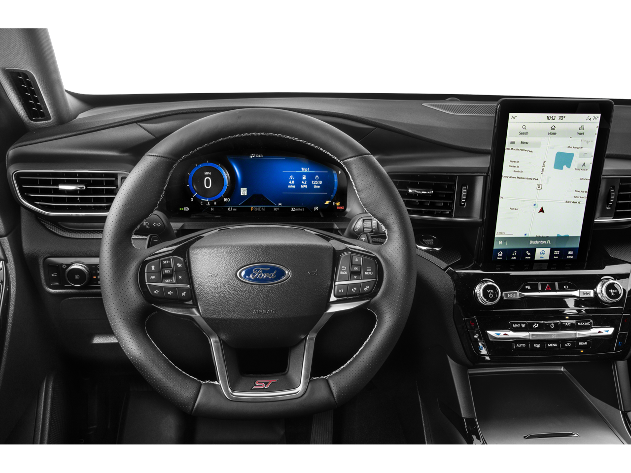 Romeo Volkswagen is proud to present this 2024 Ford Explorer with Equipment Group 401A, Ford Co-Pilot360 Assist+ (Evasive Steering Assist, Intelligent Adaptive Cruise Control, Speed Sign Recognition, and Voice-Activated Touchscreen Navigation System), ST High Package (110V/150W AC Power Outlet, 360-Degree Camera w/Split View, Auto-Dimming Rearview Mirror (Interior), Front Parking Sensors, Front Rain-Sensing Wipers, Memory Driver's Seat, Power Liftgate, Power Tilt/Telescoping Steering Column, Radio: B&O Sound System by Bang & Olufsen, Reverse Brake Assist, Second Row Heated Seats, Sideview Mirrors w/Gloss Black Caps, Third Row PowerFold (Folds Flat), Universal Garage Door Opener (UGDO), and Wireless Charging Pad), ST Street Pack (Performance Front & Rear Brakes and Wheels: 21 Aluminum), Technology Package (10.1 LCD Capacitive Portrait Touchscreen and 2 Additional Speakers), 20 Machined Aluminum w/Painted Pockets Wheels, 3.58 Non-Limited-Slip Rear Axle Ratio, 360-Degree Camera Credit, 3rd row seats: bench, 4-Wheel Disc Brakes, 4G LTE Wi-Fi Hotspot Credit, 6 Speakers, ABS brakes, Air Conditioning, Alloy wheels, AM/FM radio: SiriusXM, AM/FM Stereo, Auto High-beam Headlights, Automatic temperature control, Brake assist, Bumpers: body-color, Compass, Delay-off headlights, Driver door bin, Driver vanity mirror, Dual front impact airbags, Dual front side impact airbags, Electronic Stability Control, Emergency communication system: SYNC 3 911 Assist, Exterior Parking Camera Rear, FordPass Connect, Four wheel independent suspension, Front & Second Row Floor Liners (16B), Front anti-roll bar, Front Bucket Seats, Front Center Armrest, Front dual zone A/C, Front fog lights, Front reading lights, Fully automatic headlights, Heated door mirrors, Heated front seats, Heated steering wheel, Illuminated entry, Knee airbag, Leather Htd/Ventilated Sport Captain's Chairs, Leather steering wheel, Low tire pressure warning, Memory seat, Occupant sensing airbag, Outside temperature display, Overhead airbag, Overhead console, Panic alarm, Passenger door bin, Passenger vanity mirror, Power door mirrors, Power driver seat, Power passenger seat, Power steering, Power windows, Rear air conditioning, Rear anti-roll bar, Rear reading lights, Rear window defroster, Rear window wiper, Remote keyless entry, Reverse Brake Assist Credit, Security system, SelectShift Capability w/Paddle Shifters, Speed control, Speed-sensing steering, Speed-Sensitive Wipers, Split folding rear seat, Spoiler, Sport steering wheel, Steering wheel mounted audio controls, SYNC 3 Communications & Entertainment System, SYNC 3/Apple CarPlay/Android Auto, Tachometer, Telescoping steering wheel, Tilt steering wheel, Traction control, Trip computer, Twin Panel Moonroof, Variably intermittent wipers, and Ventilated front seats.