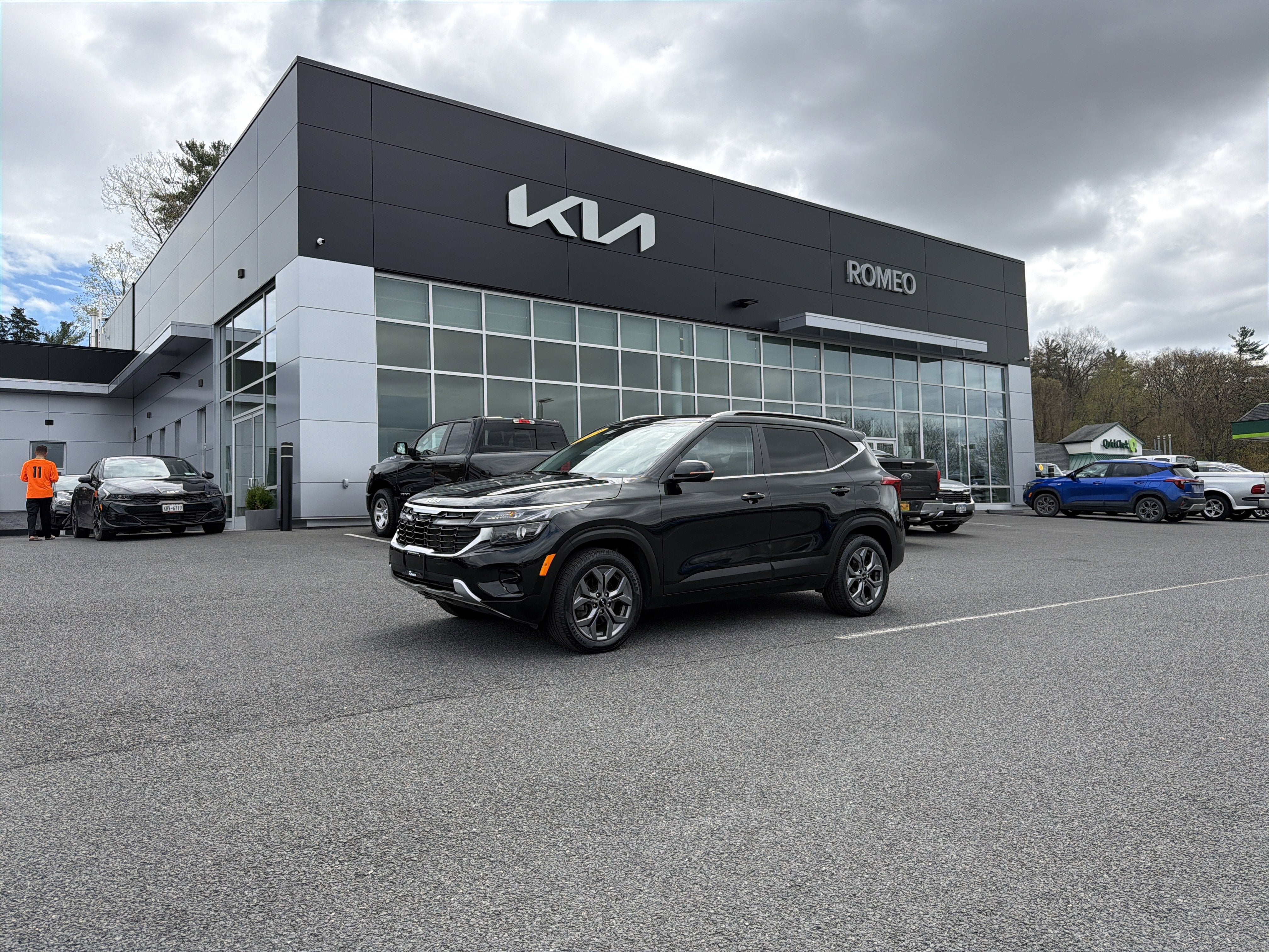 Romeo Kia proudly presents this 2024 Kia Seltos with 4-Wheel Disc Brakes, 6 Speakers, 6.052 Axle Ratio, ABS brakes, Air Conditioning, Alloy wheels, AM/FM radio: SiriusXM, Apple CarPlay & Android Auto, Auto High-beam Headlights, Automatic temperature control, Brake assist, Bumpers: body-color, Carpet Floor Mats, Delay-off headlights, Driver door bin, Driver vanity mirror, Dual front impact airbags, Dual front side impact airbags, Electronic Stability Control, Emergency communication system: 911 Connect, Exterior Parking Camera Rear, Four wheel independent suspension, Front anti-roll bar, Front Bucket Seats, Front Center Armrest, Front fog lights, Front reading lights, Fully automatic headlights, Heated door mirrors, Heated Front Bucket Seats, Heated front seats, Illuminated entry, Leather Shift Knob, Leather steering wheel, Low tire pressure warning, Navigation System, Occupant sensing airbag, Outside temperature display, Overhead airbag, Overhead console, Panic alarm, Passenger door bin, Passenger vanity mirror, Power door mirrors, Power steering, Power windows, Radio: AM/FM/HD/Satellite Display System w/Navigation, Rear seat center armrest, Rear window defroster, Rear window wiper, Remote keyless entry, Security system, Speed control, Speed-sensing steering, Split folding rear seat, Spoiler, Steering wheel mounted audio controls, Tachometer, Telescoping steering wheel, Tilt steering wheel, Traction control, Trip computer, Turn signal indicator mirrors, and Variably intermittent wipers.