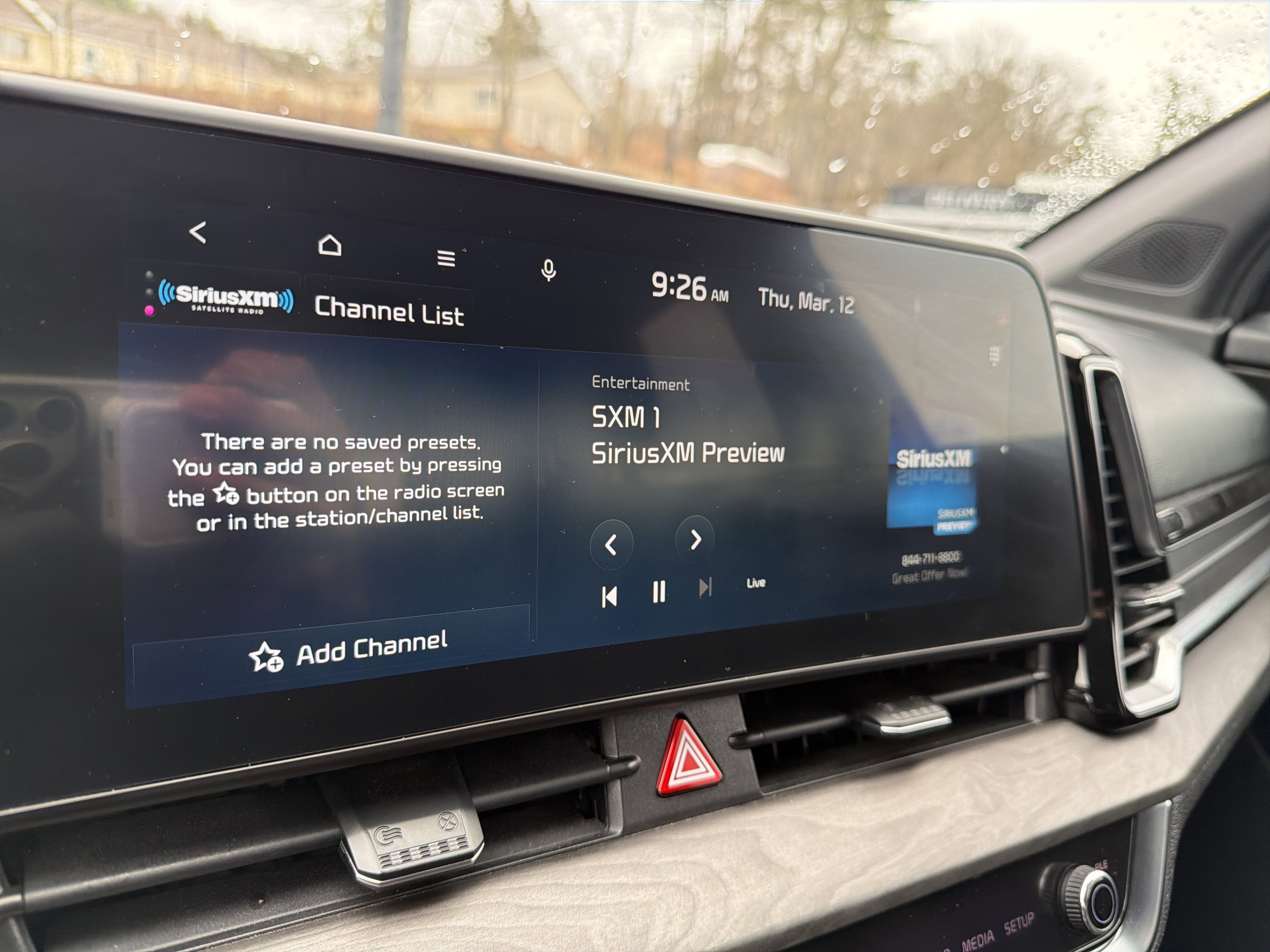 - Radio: AM/FM/HD Audio System -inc: 12.3" touchscreen w/navigation, 6 speakers, Apple Carplay and Android Auto, Kia Connect, voice recognition, WiFi, map OTA, satellite radio, steering wheel mounted audio controls and Bluetooth® phone and streaming audio