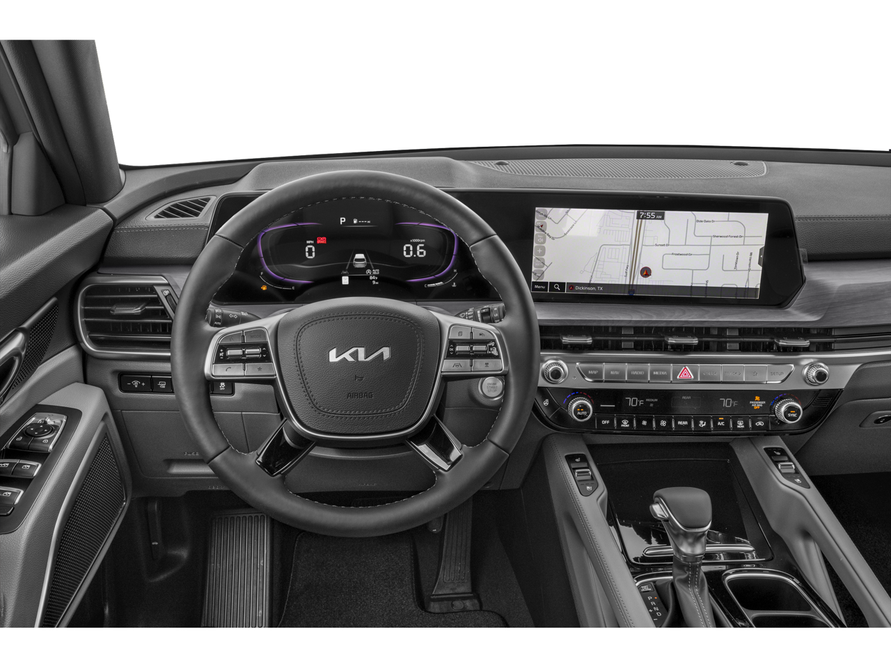 Romeo Kia proudly presents this 2024 Kia Telluride with 3.648 Axle Ratio, 3rd row seats: split-bench, 4-Wheel Disc Brakes, 6 Speakers, ABS brakes, Air Conditioning, Alloy wheels, AM/FM radio: SiriusXM, Apple CarPlay & Android Auto, Auto High-beam Headlights, Auto-dimming Rear-View mirror, Automatic temperature control, Brake assist, Bumpers: body-color, Carpet Floor Mats, Compass, Delay-off headlights, Driver door bin, Driver vanity mirror, Dual front impact airbags, Dual front side impact airbags, Electronic Stability Control, Emergency communication system: 911 Connect, Exterior Parking Camera Rear, Four wheel independent suspension, Front anti-roll bar, Front Bucket Seats, Front Center Armrest, Front dual zone A/C, Front reading lights, Fully automatic headlights, Heated & Ventilated Front Bucket Seats, Heated door mirrors, Heated front seats, Heated steering wheel, Illuminated entry, Knee airbag, Leather Seat Trim, Leather Shift Knob, Leather steering wheel, Low tire pressure warning, Navigation System, Occupant sensing airbag, Outside temperature display, Overhead airbag, Overhead console, Panic alarm, Passenger door bin, Passenger vanity mirror, Power door mirrors, Power driver seat, Power Liftgate, Power moonroof, Power passenger seat, Power steering, Power windows, Radio data system, Radio: AM/FM Display Audio System, Rear air conditioning, Rear anti-roll bar, Rear audio controls, Rear reading lights, Rear side impact airbag, Rear window defroster, Rear window wiper, Reclining 3rd row seat, Remote keyless entry, Roof rack: rails only, Security system, Smart Key w/ Push Button and Remote Start, Speed control, Speed-sensing steering, Split folding rear seat, Spoiler, Steering wheel mounted audio controls, Tachometer, Telescoping steering wheel, Tilt steering wheel, Traction control, Trip computer, Turn signal indicator mirrors, Variably intermittent wipers, and Ventilated front seats.
