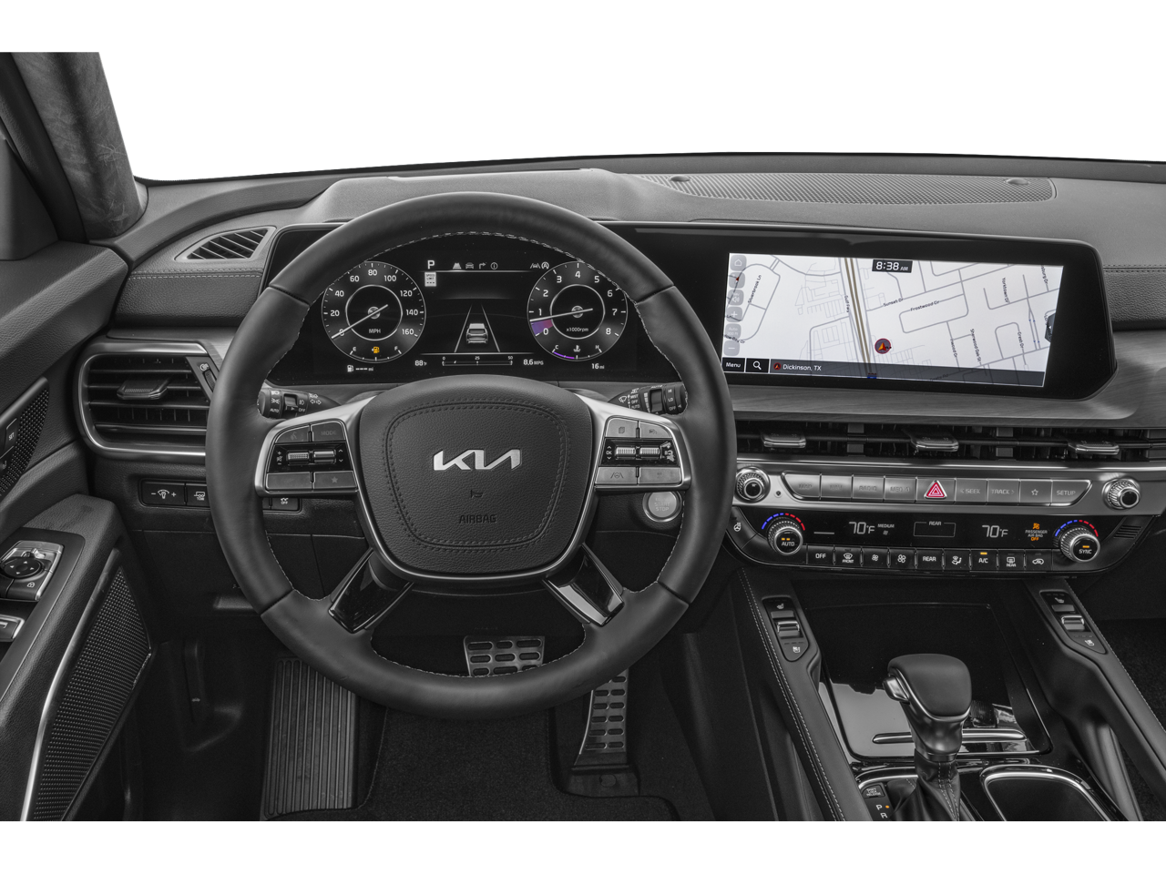 Romeo Kia proudly presents this 2024 Kia Telluride with 10 Speakers, 3.648 Axle Ratio, 3rd row seats: split-bench, 4-Wheel Disc Brakes, ABS brakes, Air Conditioning, Alloy wheels, AM/FM radio: SiriusXM, Apple CarPlay & Android Auto, Auto High-beam Headlights, Auto-dimming Rear-View mirror, Automatic temperature control, Brake assist, Bumpers: body-color, Carpet Floor Mats, Compass, Delay-off headlights, Driver door bin, Driver vanity mirror, Dual front impact airbags, Dual front side impact airbags, Electronic Stability Control, Emergency communication system: 911 Connect, Exterior Parking Camera Rear, Four wheel independent suspension, Front anti-roll bar, Front Bucket Seats, Front Center Armrest, Front dual zone A/C, Front fog lights, Front reading lights, Fully automatic headlights, Garage door transmitter: HomeLink, harman/kardon® Speakers, Heated & Ventilated Front Bucket Seats, Heated door mirrors, Heated front seats, Heated steering wheel, Illuminated entry, Knee airbag, Leather Shift Knob, Leather steering wheel, Low tire pressure warning, Memory seat, Navigation System, Occupant sensing airbag, Outside temperature display, Overhead airbag, Overhead console, Panic alarm, Passenger door bin, Passenger vanity mirror, Power door mirrors, Power driver seat, Power Liftgate, Power moonroof, Power passenger seat, Power steering, Power windows, Radio data system, Radio: AM/FM Harman Kardon Audio System, Rear air conditioning, Rear anti-roll bar, Rear audio controls, Rear reading lights, Rear side impact airbag, Rear window defroster, Rear window wiper, Reclining 3rd row seat, Remote keyless entry, Roof rack: rails only, Security system, Smart Key w/ Push Button and Remote Start, Speed control, Speed-sensing steering, Split folding rear seat, Spoiler, Steering wheel mounted audio controls, Tachometer, Telescoping steering wheel, Tilt steering wheel, Traction control, Trip computer, Turn signal indicator mirrors, Variably intermittent wipers, and Ventilated front seats.