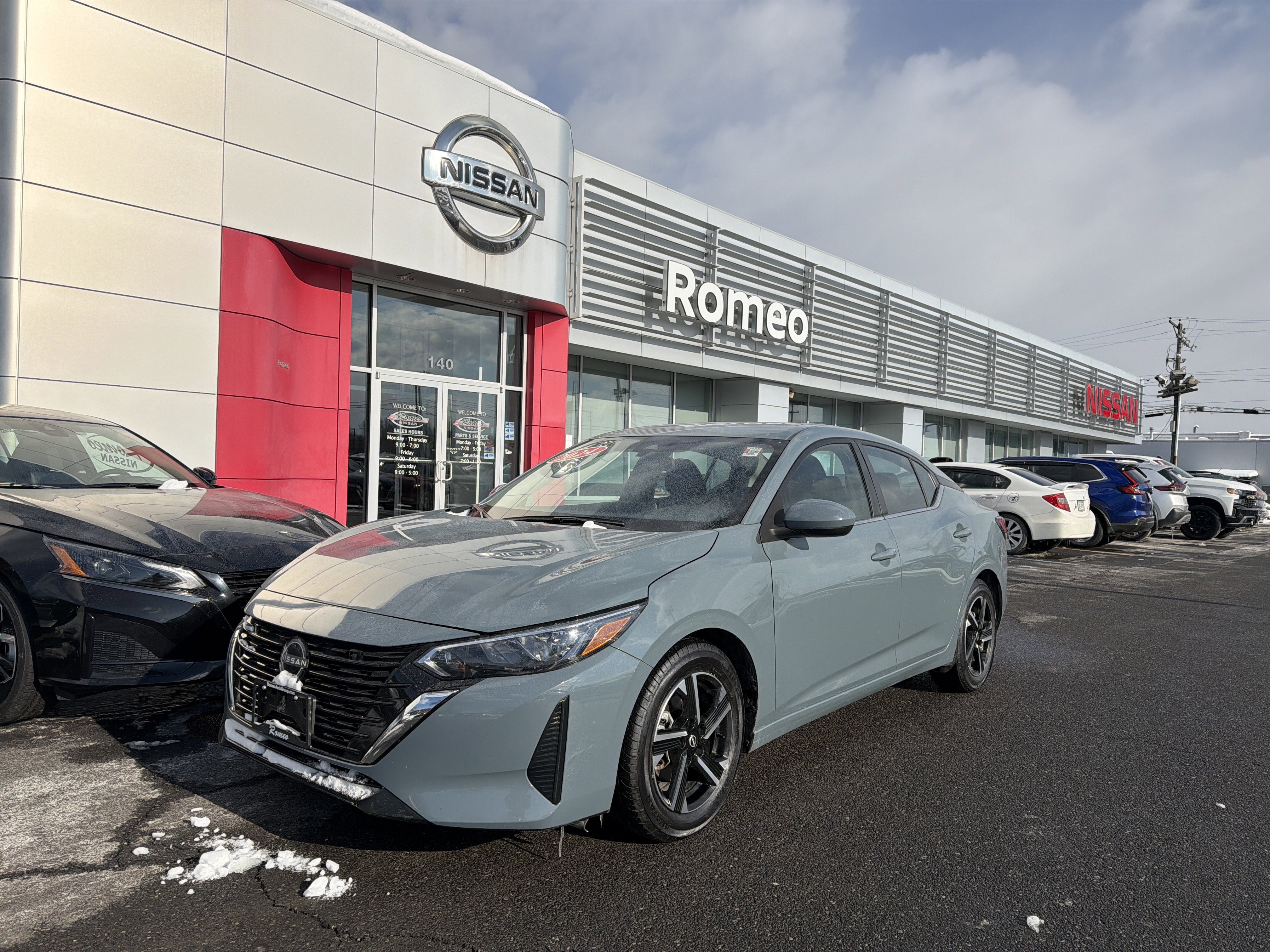 Romeo Nissan is proud to present this 2024 Nissan Sentra with 16 Alloy Wheels, 4-Wheel Disc Brakes, 6 Speakers, ABS brakes, Air Conditioning, Alloy wheels, AM/FM radio: SiriusXM, Auto High-beam Headlights, Blind Spot Warning, Brake assist, Bumpers: body-color, Delay-off headlights, Driver door bin, Driver vanity mirror, Dual front impact airbags, Dual front side impact airbags, Electronic Stability Control, Four wheel independent suspension, Front anti-roll bar, Front Bucket Seats, Front Center Armrest, Front reading lights, Fully automatic headlights, Illuminated entry, Knee airbag, Leather steering wheel, Low tire pressure warning, NissanConnect featuring Apple CarPlay and Android Auto, Occupant sensing airbag, Outside temperature display, Overhead airbag, Overhead console, Panic alarm, Passenger door bin, Passenger vanity mirror, Power door mirrors, Power steering, Power windows, Radio data system, Radio: AM/FM w/RDS/MP3/Aux-In, Rear anti-roll bar, Rear Parking Sensors, Rear side impact airbag, Rear window defroster, Remote keyless entry, Security system, Speed control, Speed-sensing steering, Split folding rear seat, Steering wheel mounted audio controls, Tachometer, Telescoping steering wheel, Tilt steering wheel, Traction control, Trip computer, Upgraded Cloth Seat Trim, and Variably intermittent wipers.