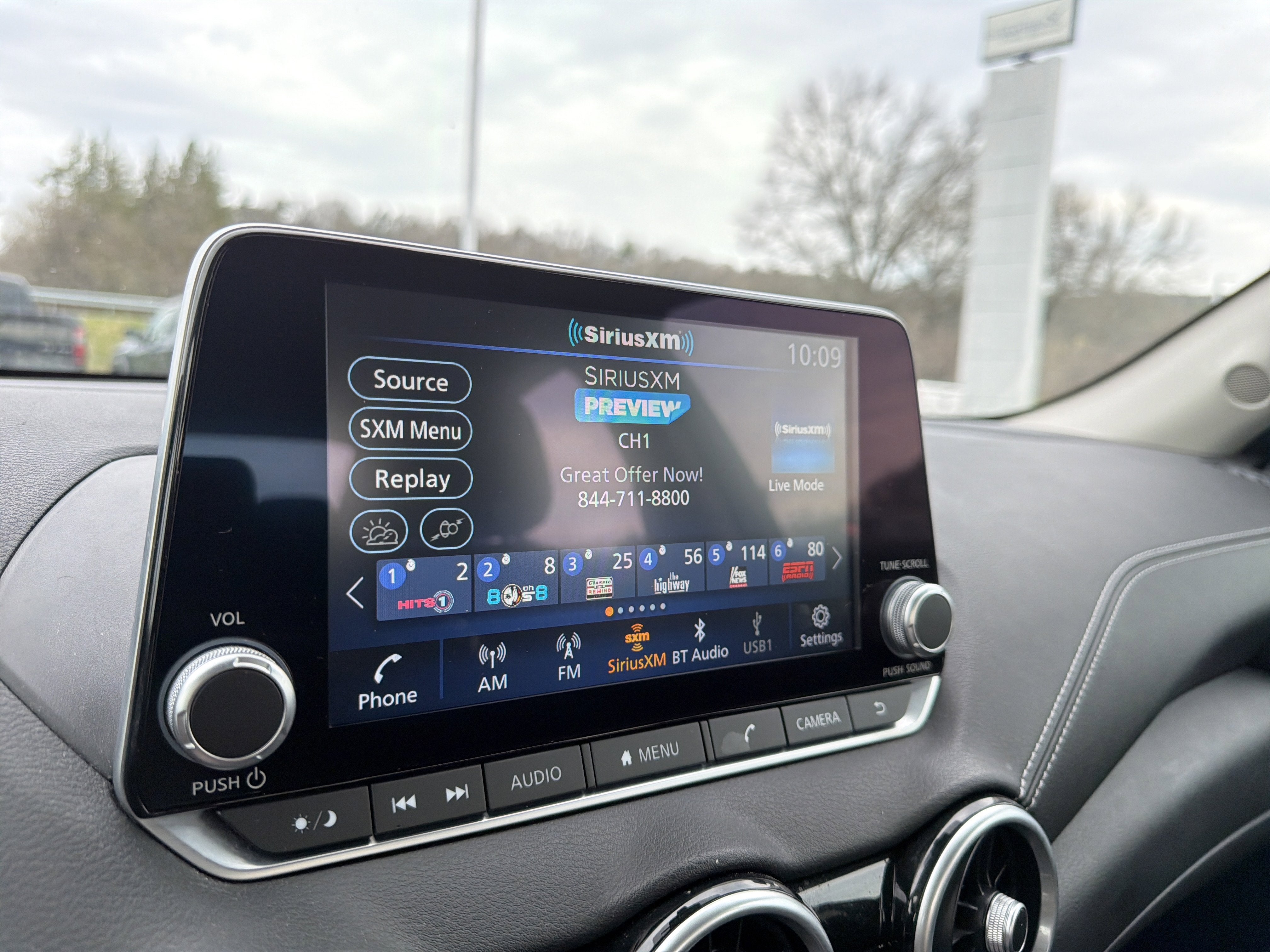 - Radio: AM/FM con sistema de radio datos/reproductor de MP3/entrada auxiliar -incluye: 6 altavoces más 2 altavoces de altos en el pilar A, pantalla a color de 8 plg con control multitáctil, difusión de audio mediante Bluetooth, sistema Bluetooth de teléfono a manos libres, asistencia de mensajes de texto a manos libres, Siri Eyes Free, reconocimiento de voz Google Assistant con Apple CarPlay y Android Auto, NissanConnect, 1 entrada USB delantera de tipo A, 1 entrada USB delantera adicional (tipo C), 1 entrada USB de carga solamente (tipo A) en la consola central, y radio satélite SiriusXM con funciones de audio avanzadas