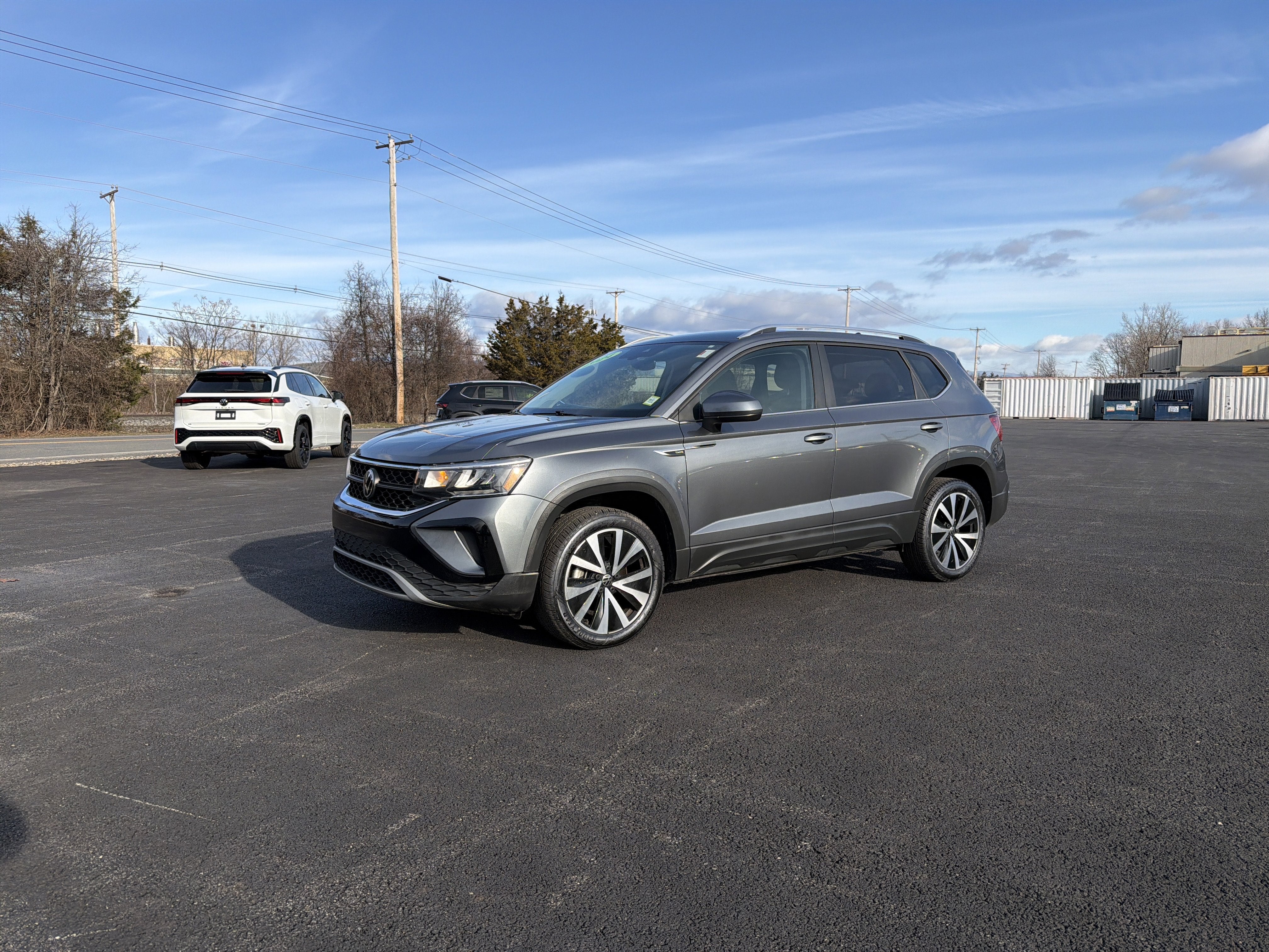 Romeo Volkswagen is proud to present this 2024 Volkswagen Taos with 3.23 Axle Ratio, 4-Wheel Disc Brakes, 6 Speakers, ABS brakes, Active Blind Spot Monitor, Air Conditioning, Alloy wheels, AM/FM radio: SiriusXM with 360L, Auto High-beam Headlights, Automatic temperature control, Brake assist, Bumpers: body-color, CloudTex & Cloth Seating Surfaces, Compass, Delay-off headlights, Driver door bin, Driver vanity mirror, Dual front impact airbags, Dual front side impact airbags, Electronic Stability Control, Emergency communication system: VW Car-Net Safe & Secure 5-year, Exterior Parking Camera Rear, Front anti-roll bar, Front Bucket Seats, Front Center Armrest, Front dual zone A/C, Front reading lights, Front Strut Rear Torsion Beam Suspension, Front wheel independent suspension, Fully automatic headlights, Heated door mirrors, Heated Front Bucket Seats, Heated front seats, Heated steering wheel, Illuminated entry, Leather Shift Knob, Low tire pressure warning, Occupant sensing airbag, Outside temperature display, Overhead airbag, Overhead console, Panic alarm, Passenger door bin, Passenger vanity mirror, Power door mirrors, Power driver seat, Power steering, Power windows, Radio data system, Radio: MIB3 Composition Media AM/FM/HD, Rain sensing wipers, Rear anti-roll bar, Rear seat center armrest, Rear window defroster, Rear window wiper, Remote keyless entry, Roof rack: rails only, Security system, Speed control, Speed-sensing steering, Split folding rear seat, Spoiler, Steering wheel mounted audio controls, Tachometer, Telescoping steering wheel, Tilt steering wheel, Traction control, Trip computer, Variably intermittent wipers, and Wheels: 18 2-Tone Machined Alloy.