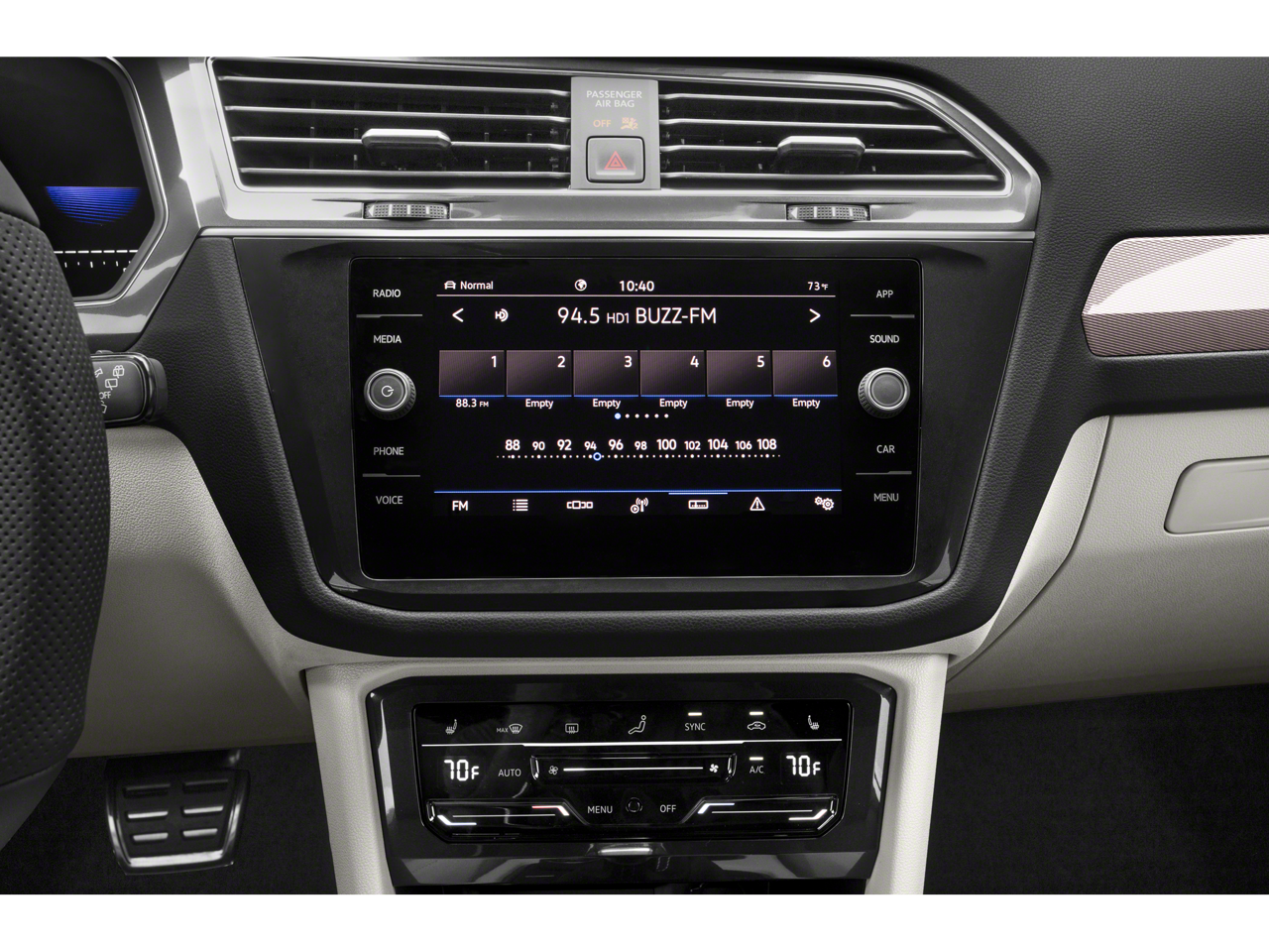 - Radio: MIB3 Composition Media AM/FM/HD -inc: 8" touchscreen, WMA/MP3/FLAC player w/USB-C, voice control, 6-speaker sound system, capability for in-vehicle 4G LTE enabled Wi-Fi (cellular data plan required; includes limited trial), capability for VW Car-Net services (capabilities for certain services vary; requires enrollment or subscription), Bluetooth® connectivity (for compatible devices), SiriusXM w/360L (w/3-month free trial subscription; 360L services require acceptance of Car-Net terms), App-Connect smartphone integration (w/Apple CarPlay, Android Auto and MirrorLink) via USB, Wireless App-Connect smartphone integration (for compatible devices) w/multi-phone pairing capability, 45W fast charging (for compatible mobile phones and accessories) via USB in first and second rows and Qi wireless inductive charger (for compatible mobile phones and accessories)