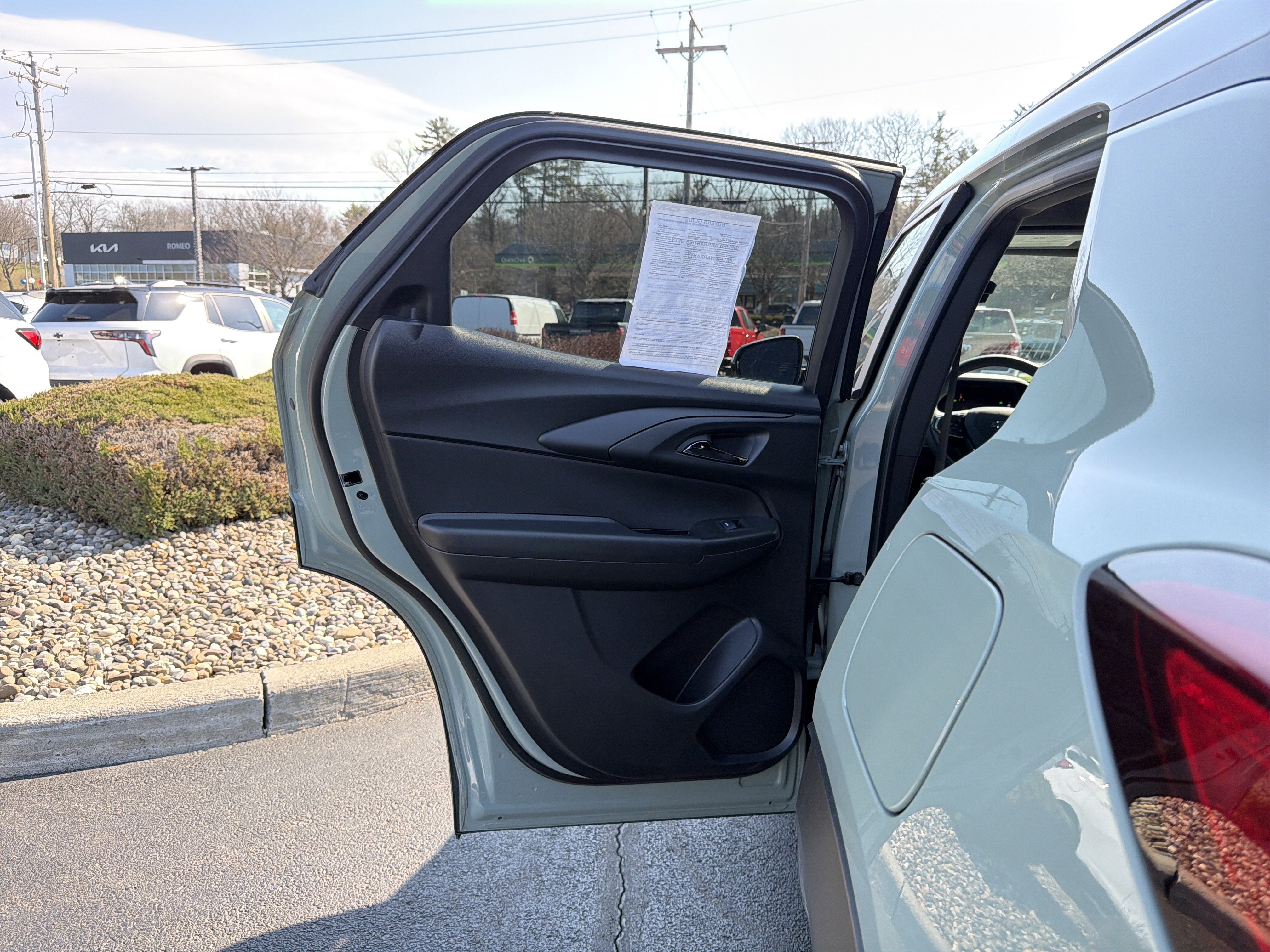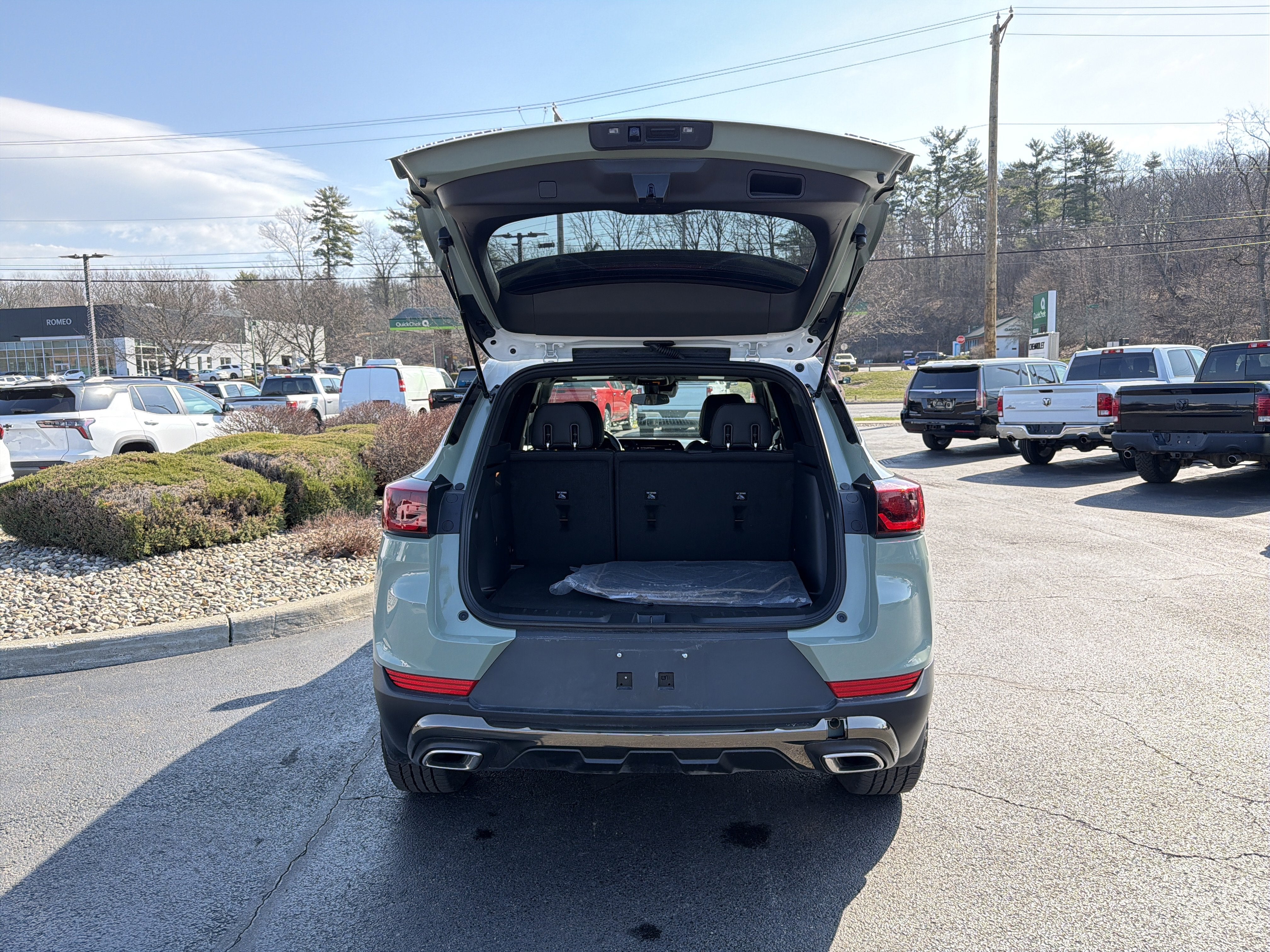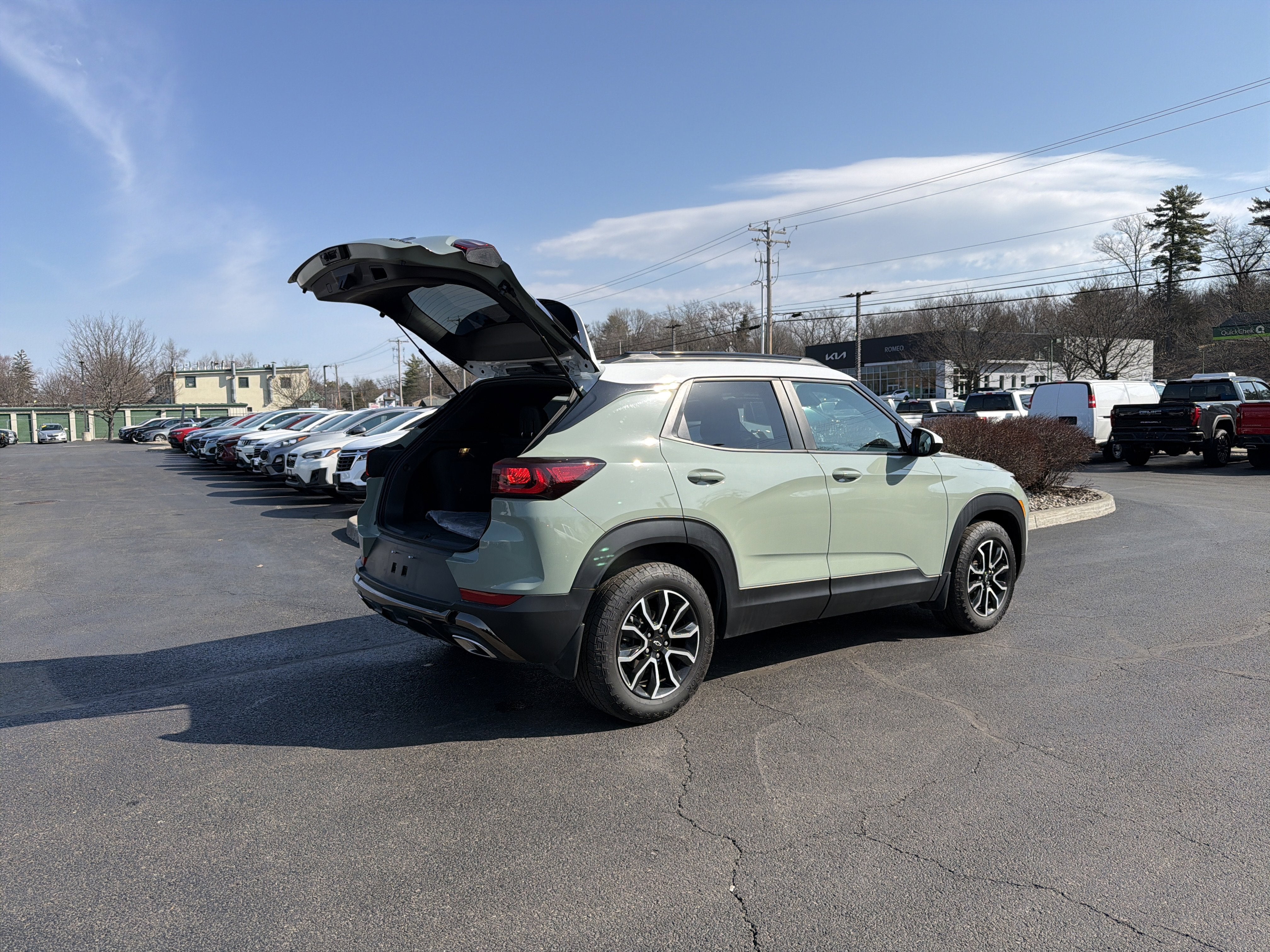 New Price! Romeo GM Center Proudly presents this 2025 Chevrolet TrailBlazer with Preferred Equipment Group 1SA, Winter/Summer Floor Mat Package (Front and Rear All-Weather Floor Liners and Premium Carpeted Floor Mats), 1 Type-An and 1 Type-C USB Ports, 2-Way Power Driver Lumbar Seat Adjuster, 4-Way Manual Front Passenger Seat Adjuster, 4-Wheel Disc Brakes, 5.45 Final Drive Axle Ratio, 6 Speakers, 6-Speaker Audio System Feature, 8-Way Power Driver Seat Adjuster, ABS brakes, Air Conditioning, Alloy wheels, AM/FM radio: SiriusXM, Auto High-beam Headlights, Brake assist, Bumpers: body-color, Compass, Delay-off headlights, Driver door bin, Driver vanity mirror, Dual front impact airbags, Dual front side impact airbags, Electronic Stability Control, Emergency communication system: OnStar and Chevrolet connected services capable, Evotex Seat Trim, Exterior Parking Camera Rear, Flat-Folding Front Passenger Seatback, Front anti-roll bar, Front Bucket Seats, Front Center Armrest, Front License Plate Bracket, Front reading lights, Front wheel independent suspension, Fully automatic headlights, Heated door mirrors, Heated Driver and Front Passenger Seats, Heated front seats, Heated steering wheel, Illuminated entry, Knee airbag, Low tire pressure warning, Occupant sensing airbag, Overhead airbag, Overhead console, Panic alarm, Passenger door bin, Passenger vanity mirror, Power door mirrors, Power driver seat, Power steering, Power windows, Radio data system, Radio: AM/FM Stereo Audio System, Rear seat center armrest, Rear side impact airbag, Rear window defroster, Rear window wiper, Remote keyless entry, Ride and Handling Suspension, Security system, SiriusXM Trial Subscription, Speed control, Split folding rear seat, Spoiler, Steering wheel mounted audio controls, Summit White Two-Tone Roof, Tachometer, Telescoping steering wheel, Tilt steering wheel, Traction control, Trip computer, Variably intermittent wipers, Wheels: 17" High Gloss Black Machined Aluminum, and Wireless Apple CarPlay/Android Auto. Priced below KBB Fair Purchase Price!Cacti Green 2025 Chevrolet TrailBlazer ACTIV FWD CVT 1.3L Ecotec Turbo DOHC SIDI w/VVT