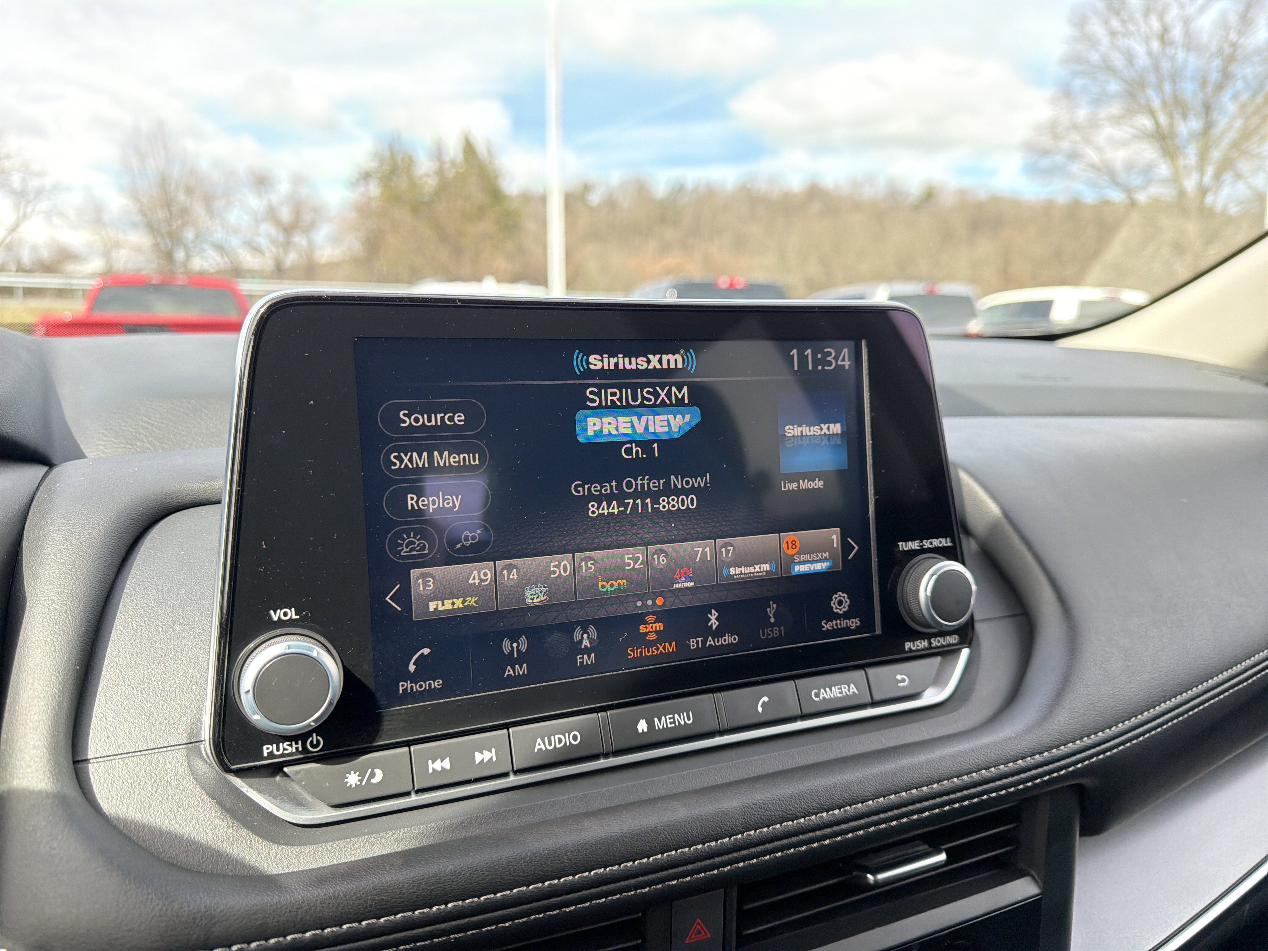 - Radio: AM/FM NissanConnect -incluye: 6 altavoces más 2 altavoces de altos, Apple CarPlay, Android Auto, pantalla táctil a color de 8 plg, Bluetooth, 2 entradas USB delanteras de tipo C, punto de acceso inalámbrico y servicios NissanConnect con tecnología de SiriusXM